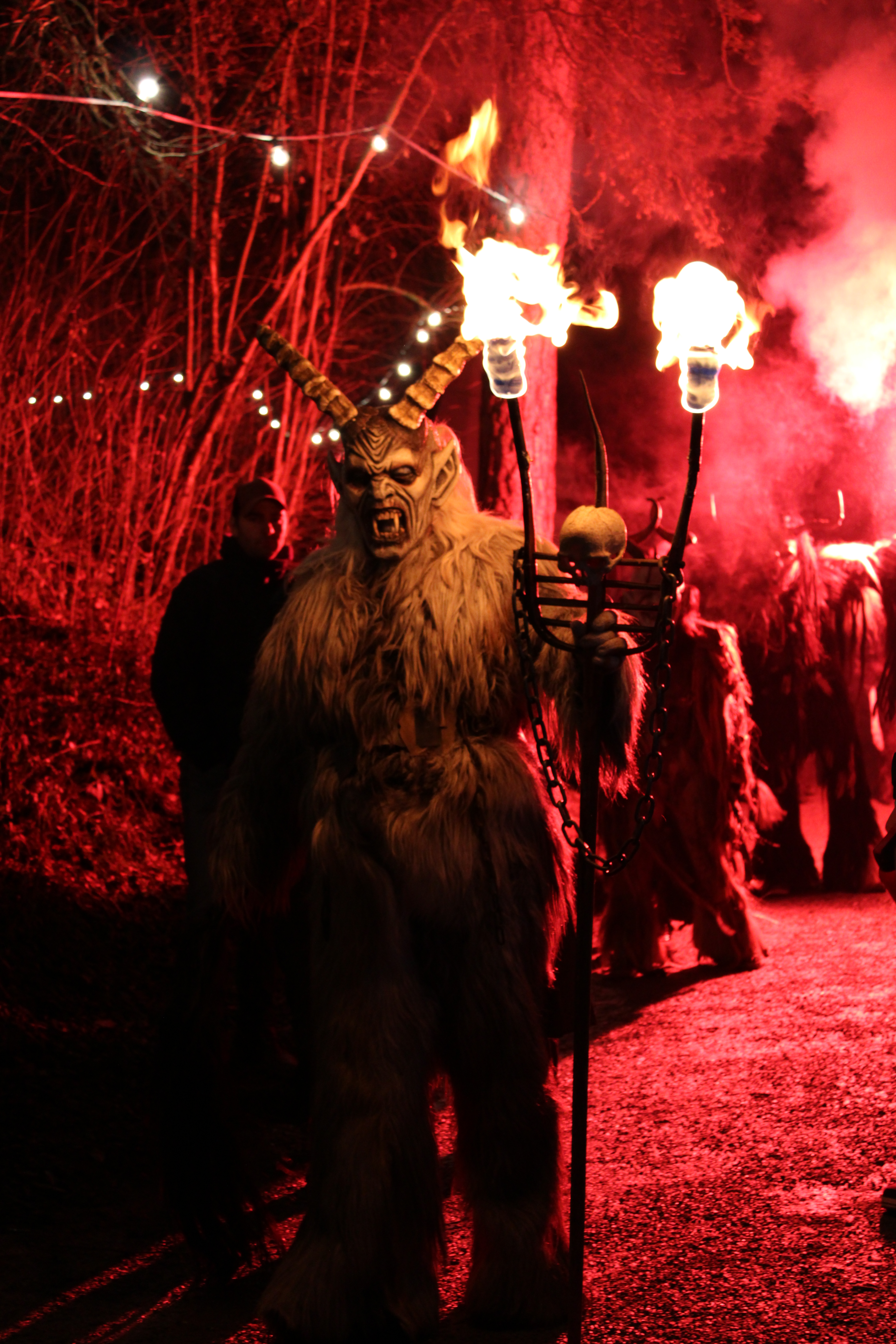 In tutta l’area tedesca il Krampus (derivato dal tedesco arcaico kramp ovvero artiglio) è un essere demoniaco (uomo-capra) che accompagna la figura di San Nicola. Questa tradizione è legata alla mitologia cristiana in quanto il Krampus è un demonio sconfitto dallo stesso San Nicola e perciò costretto a seguirlo.