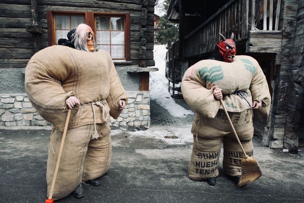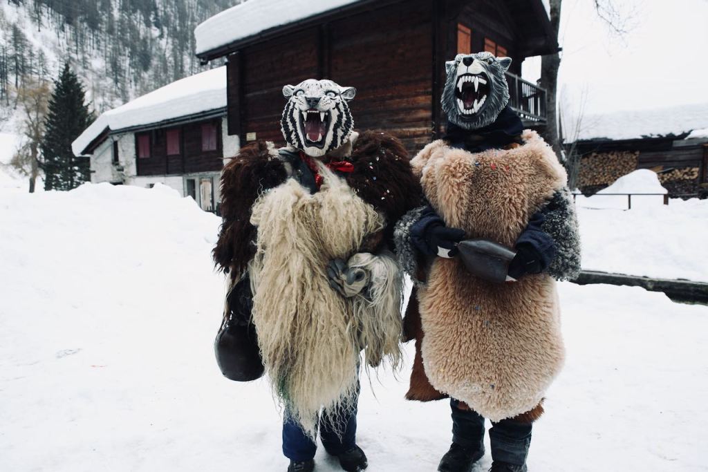 Il comune di Evolène si trova sopra Sion nel Vallese nella Val d’Hérens. A Évolène, L’ultima domenica di carnevale, le maschere degli «empaillés» e «peluches» escono per le strade del villaggio. Il carnevale tempo fa era un momento di pura sregolatezza: erano concessi sgambetti e spintoni e andare in giro a seminare spavento era visto come un modo per allontanare gli spiriti maligni e scacciare l’inverno. Da una trentina d’anni il carnevale è noto anche al di fuori di Évolène ed è diventato più tranquillo.