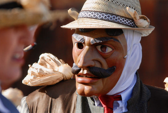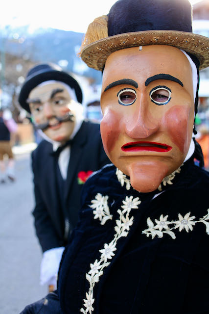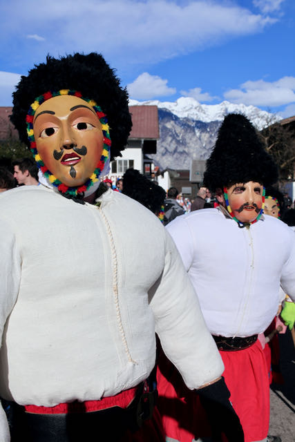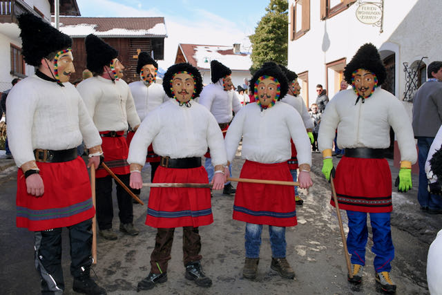 Giovani uomini che indossano cappelli neri, maschere in legno e camicie bianche imbottite di fieno sfilano per le vie del piccolo paese e inscenano una lotta (cosidetta Wampeler “pancia grassa”) contro i Riders che cercano di imbrattare le loro camicie. Questa lotta determinerà il raccolto dell’anno: più Wampeler escono indenni da questa battaglia più ricco sarà il raccolto. I personaggi in maschera più caratteristici di Axams sono i cosiddetti “Wampeler”, “Tuxer”, “Flitscheler”, “Nadln” e “Buijazzln”, vestiti con abiti colorati e brillanti attirano l’attenzione dei passanti. L’evento inizia intorno a mezzogiorno sulla piazza centrale del paese.