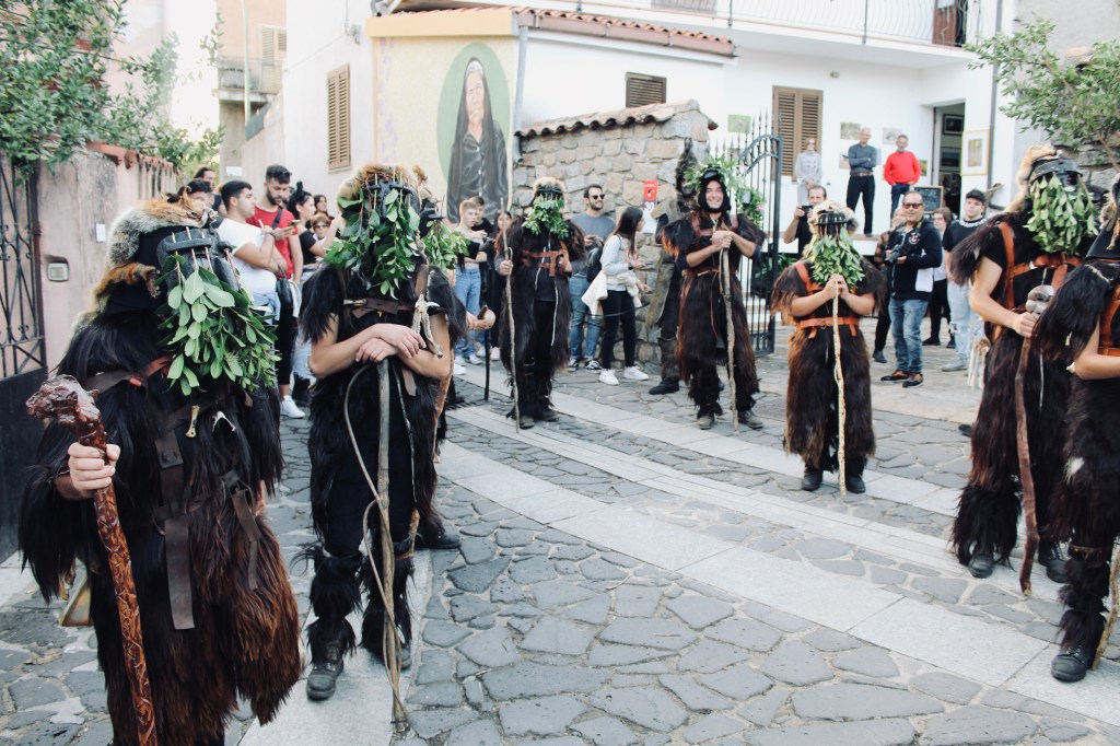 Sos Colonganos indossano pelle di pecora e ossa di vari animali, sul capo pelle di volpe e di martora. Portano una maschera di sughero ricoperta di rami di corbezzolo, inscenano una danza muovendo grandi forconi artigianali.