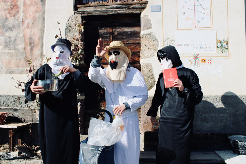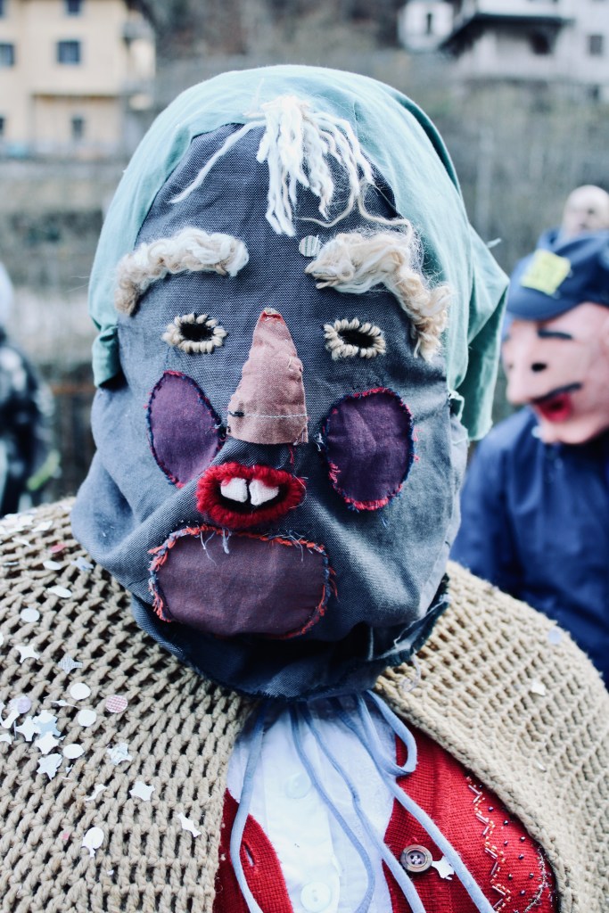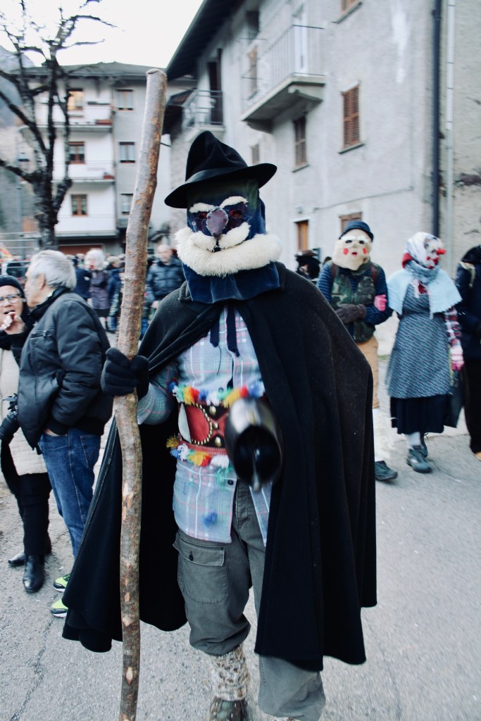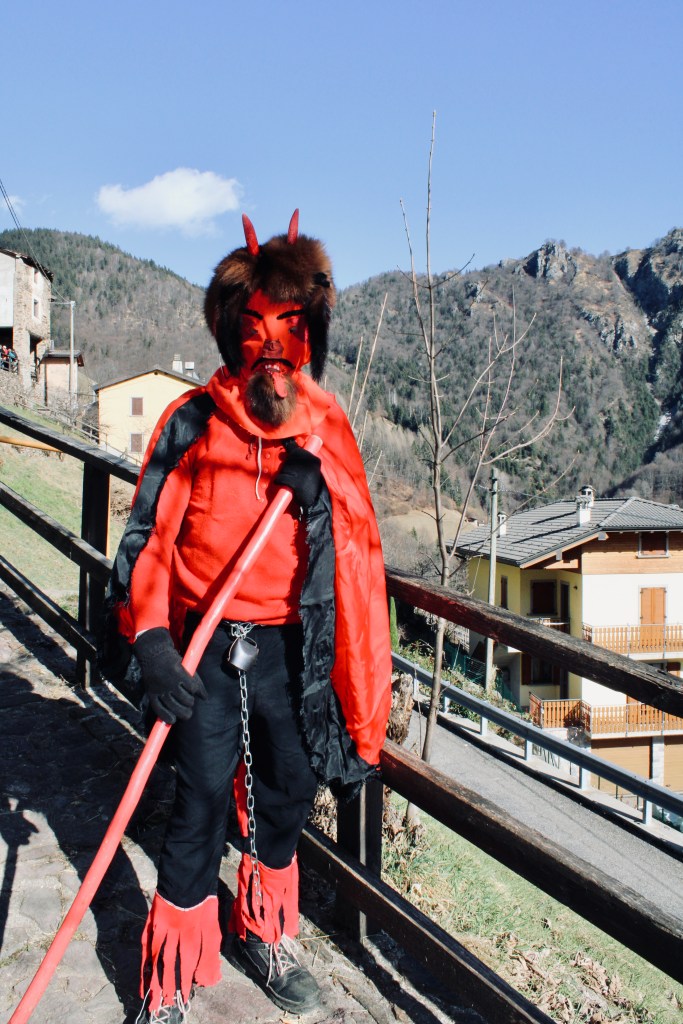 Alla guida del corteo troviamo il Vecio che fa da capo del Carnevale e richiama l’attenzione suonando il suo campanaccio. Questo viene seguito dai diavoletti noti come Furchetì che inscenano sfide con le altre maschere.