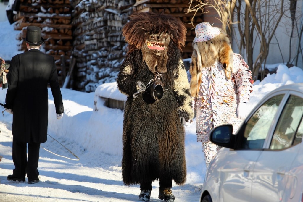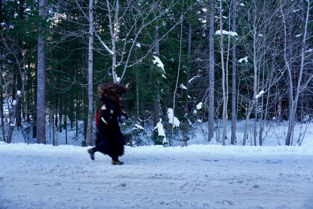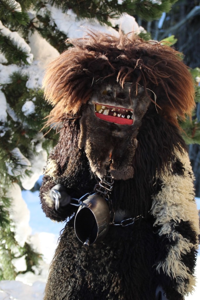 Il corteo anima il villaggio dal pomeriggio fino a sera e queste figure animalesche fanno suonare i loro campanacci e sonagli per tutto il fondovalle.
