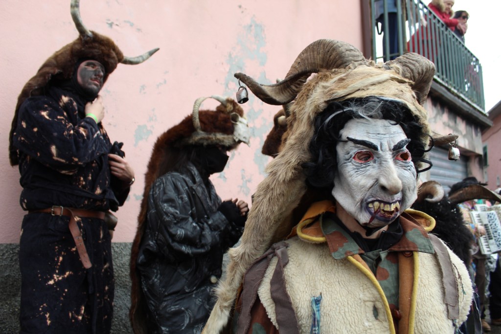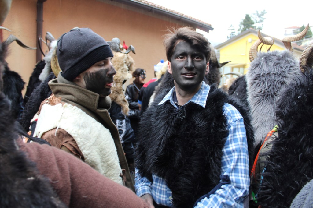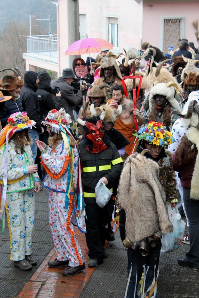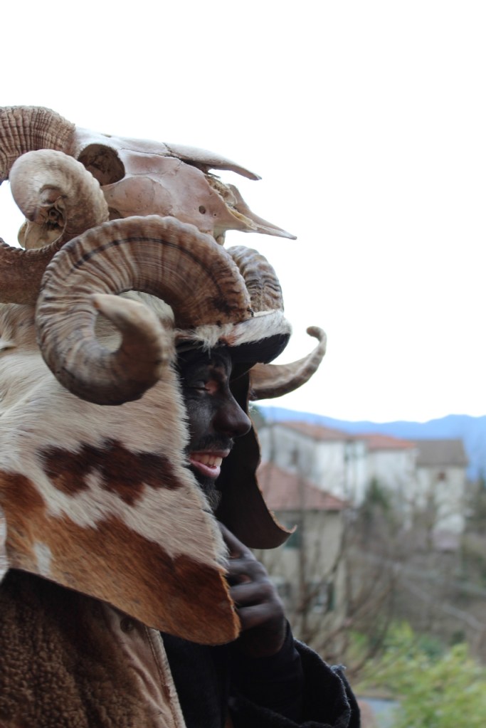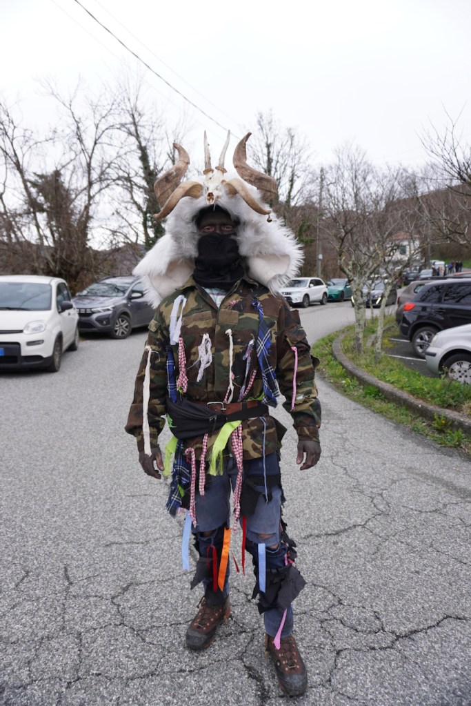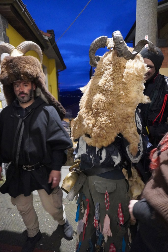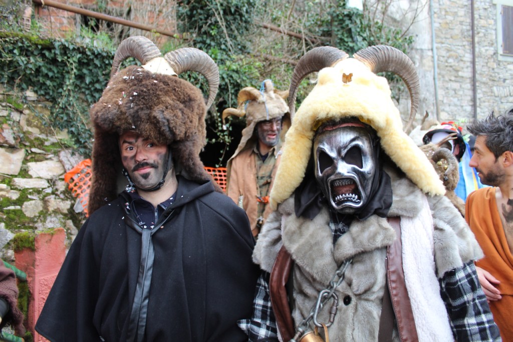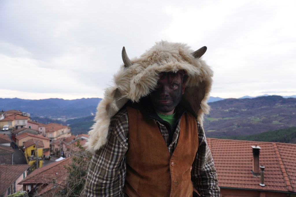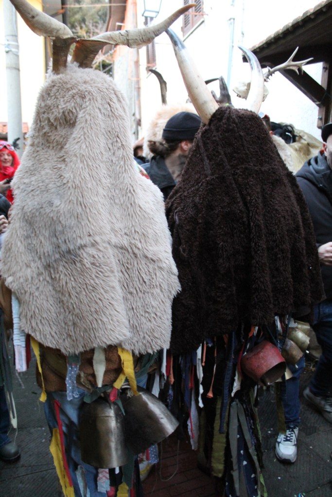 I Brutti, invece, si vestono con pelli di capra o pecora e sulla testa hanno lunghe e grosse corna e il loro viso è tinto di nero. In vita indossano campanacci da mucca, che fanno risuonare danno ritmo allo stesso rito arcaico.