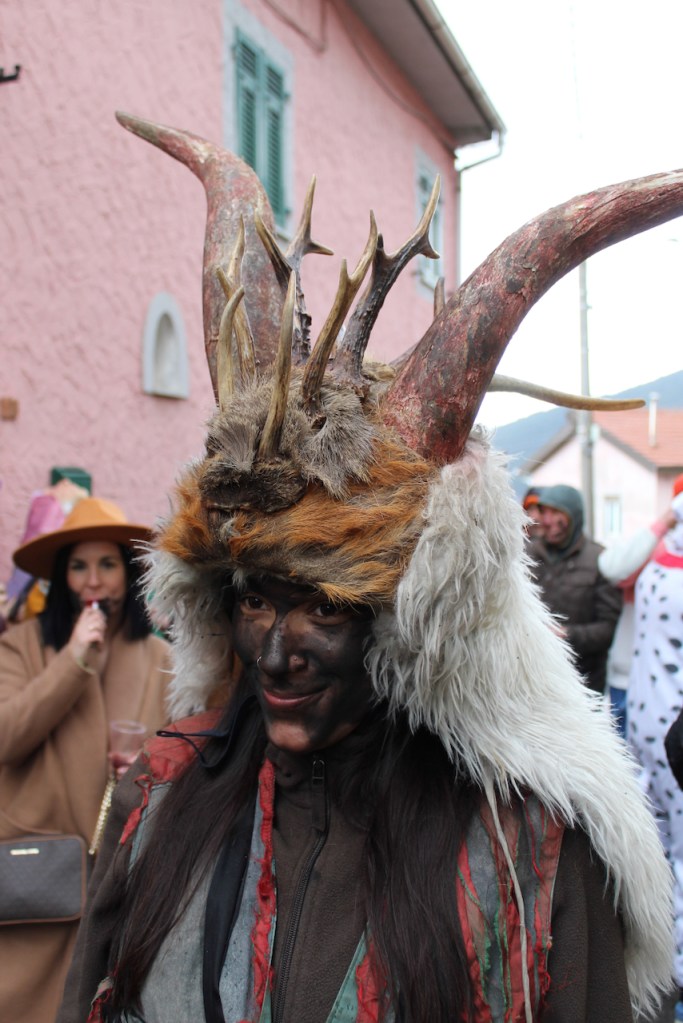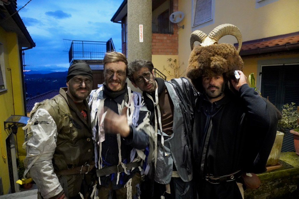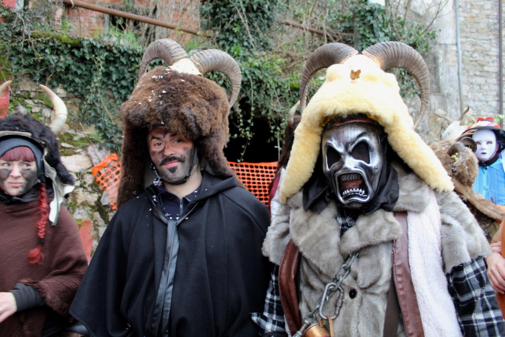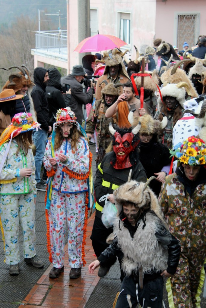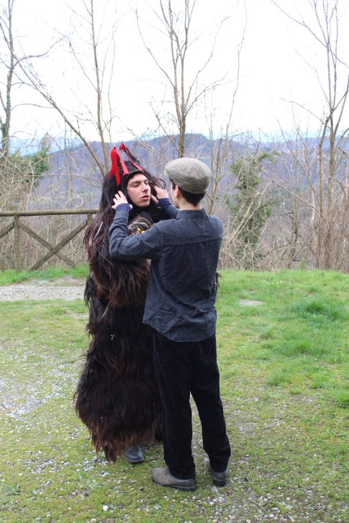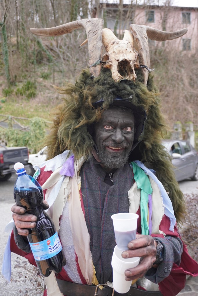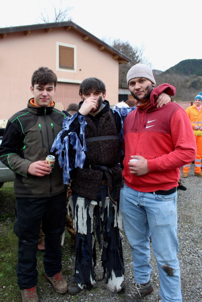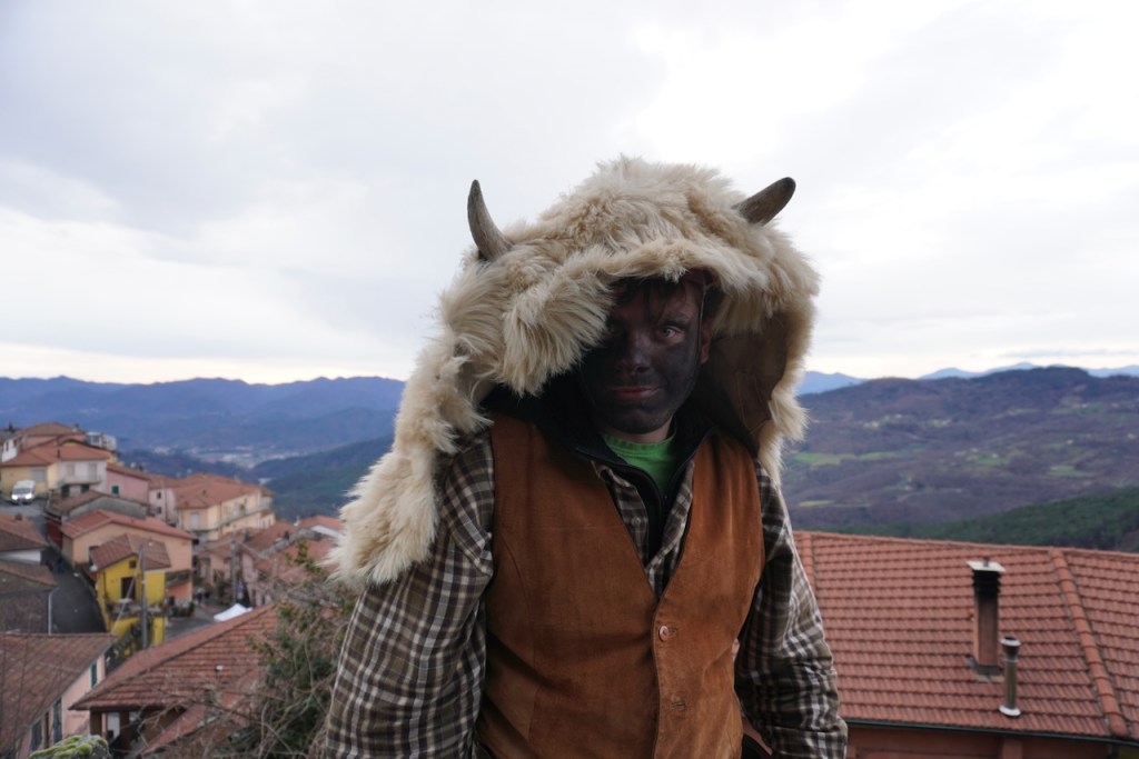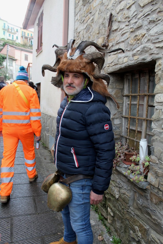 I Brutti, invece, si vestono con pelli di capra o pecora e sulla testa hanno lunghe e grosse corna e il loro viso è tinto di nero. In vita indossano campanacci da mucca, che fanno risuonare danno ritmo allo stesso rito arcaico.