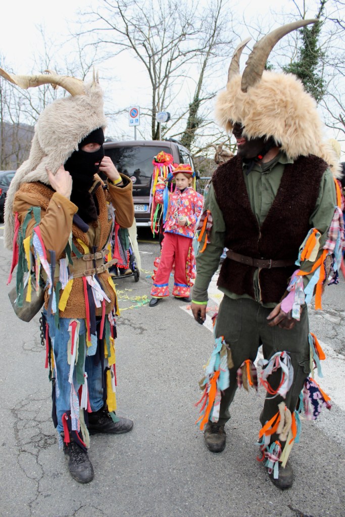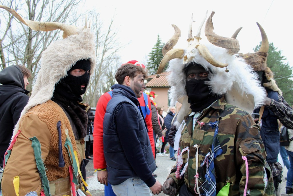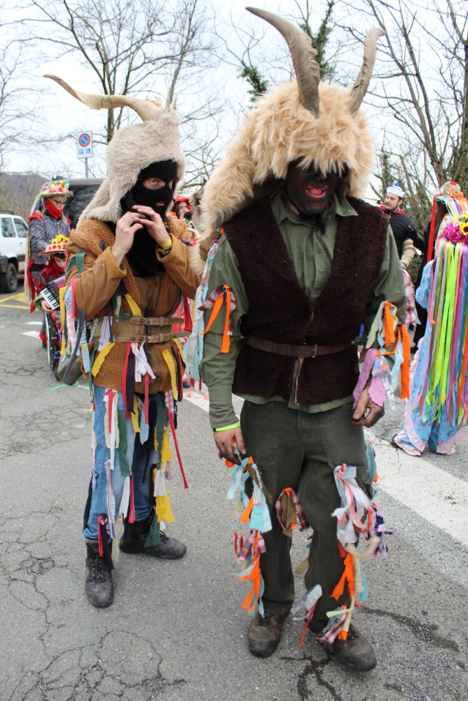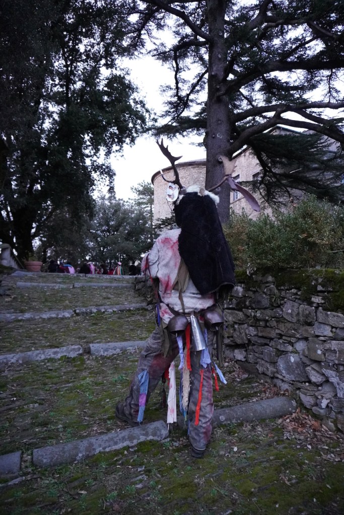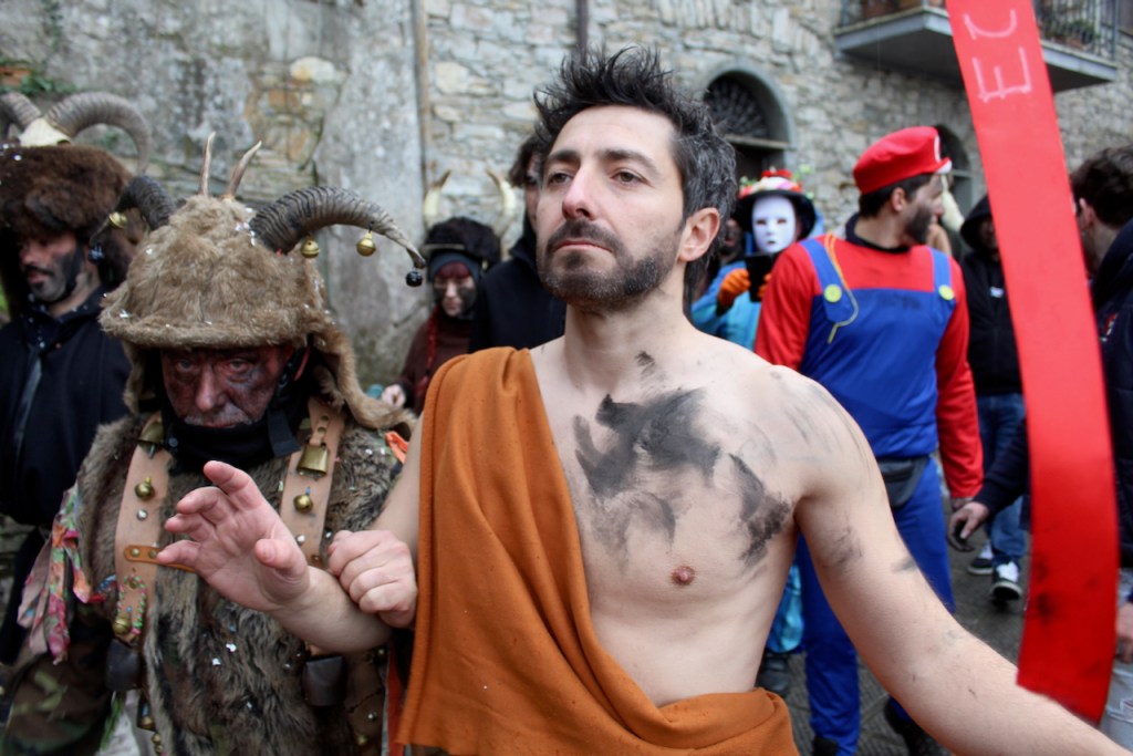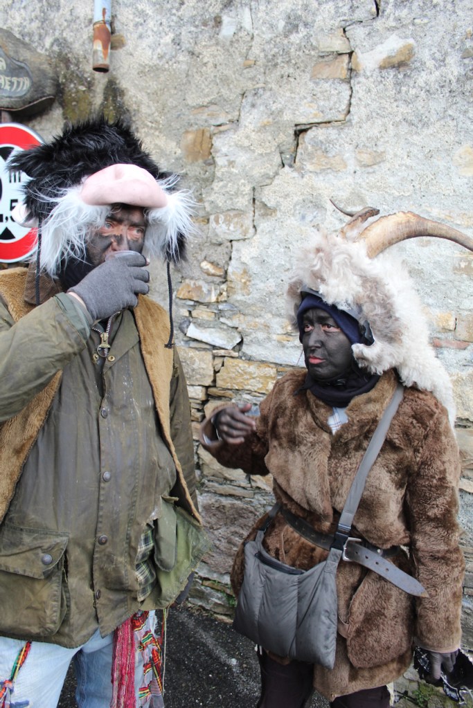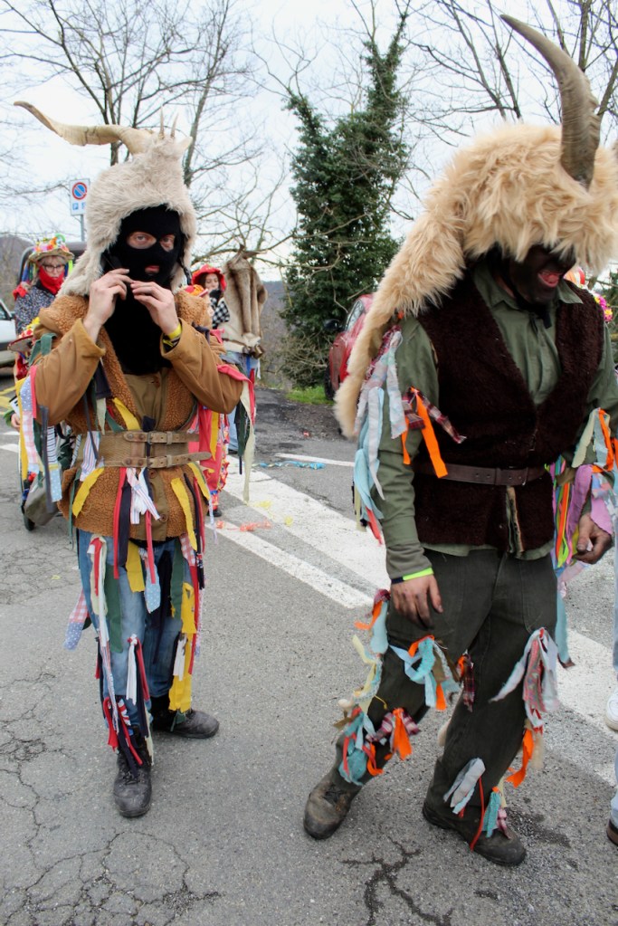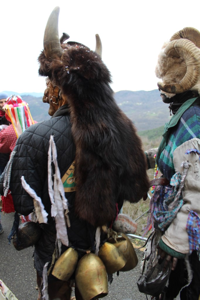 I Brutti, invece, si vestono con pelli di capra o pecora e sulla testa hanno lunghe e grosse corna e il loro viso è tinto di nero. In vita indossano campanacci da mucca, che fanno risuonare danno ritmo allo stesso rito arcaico.