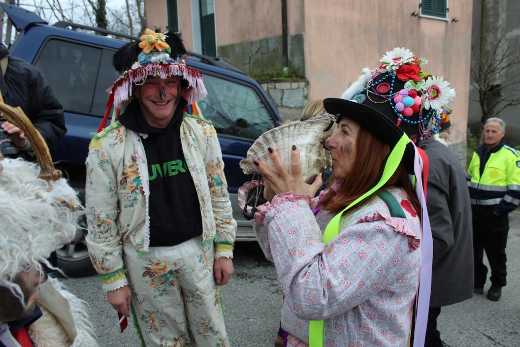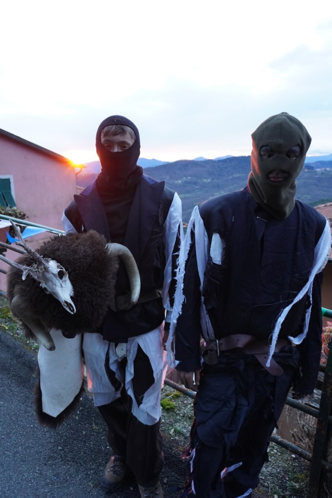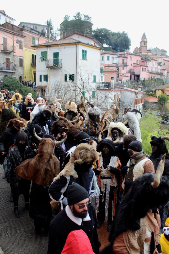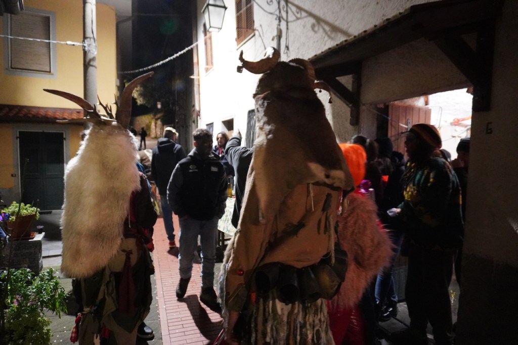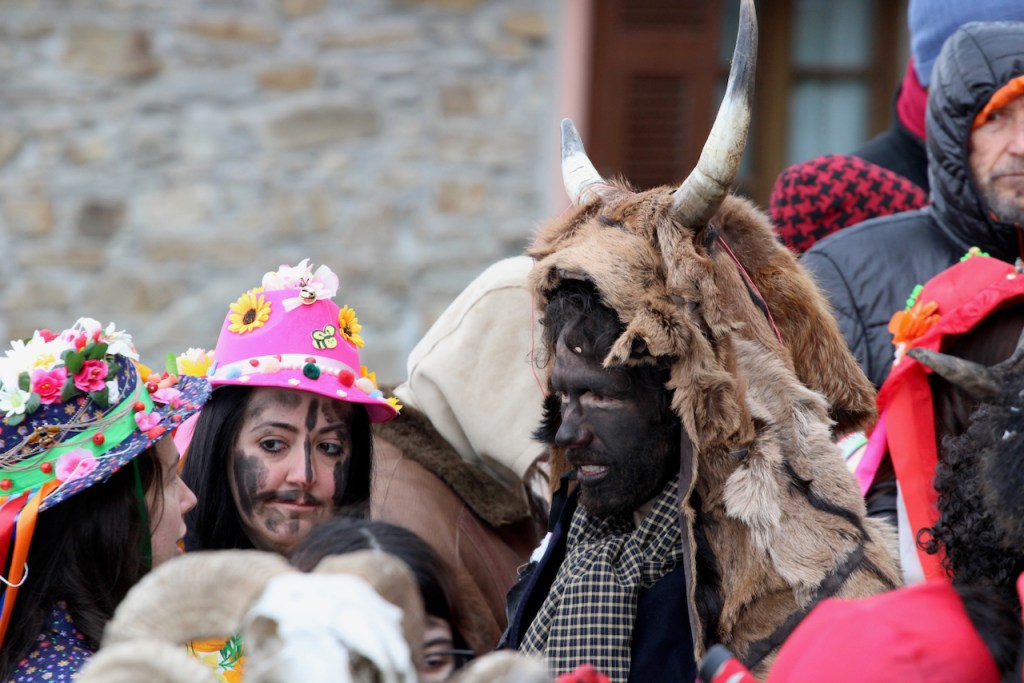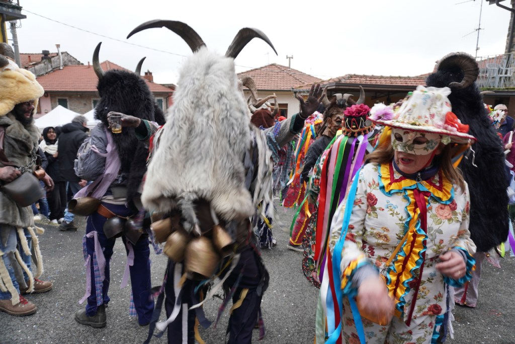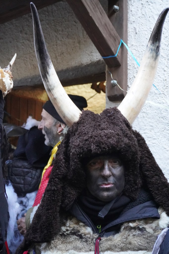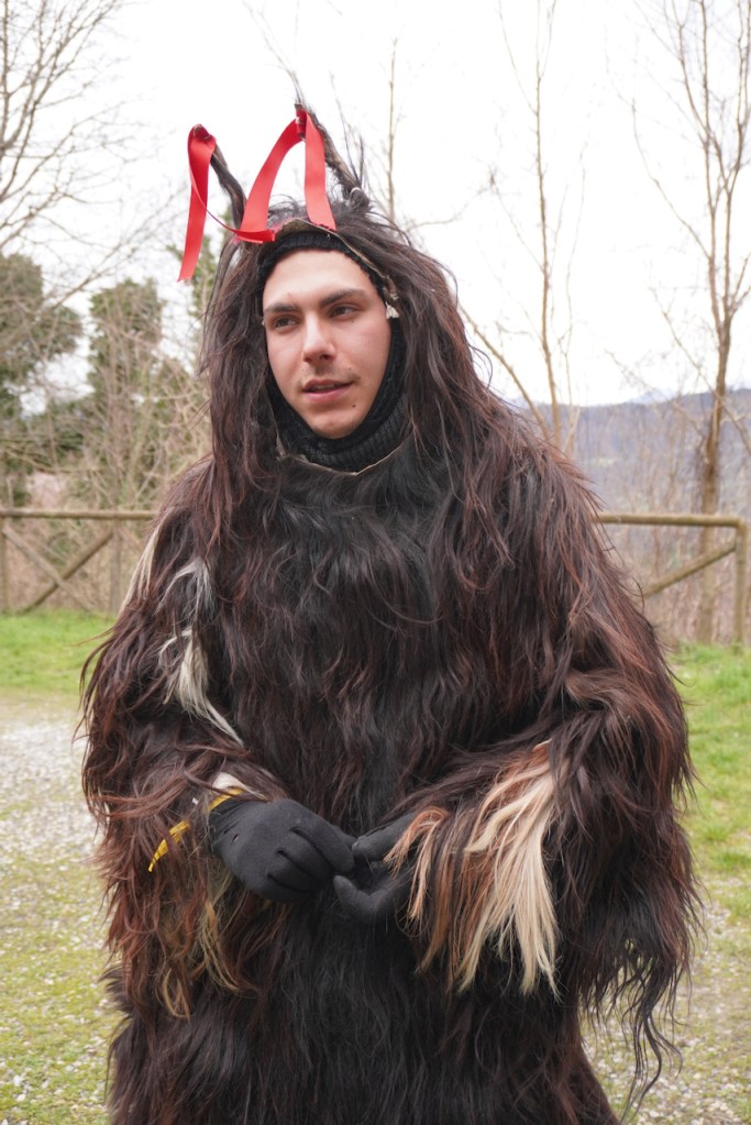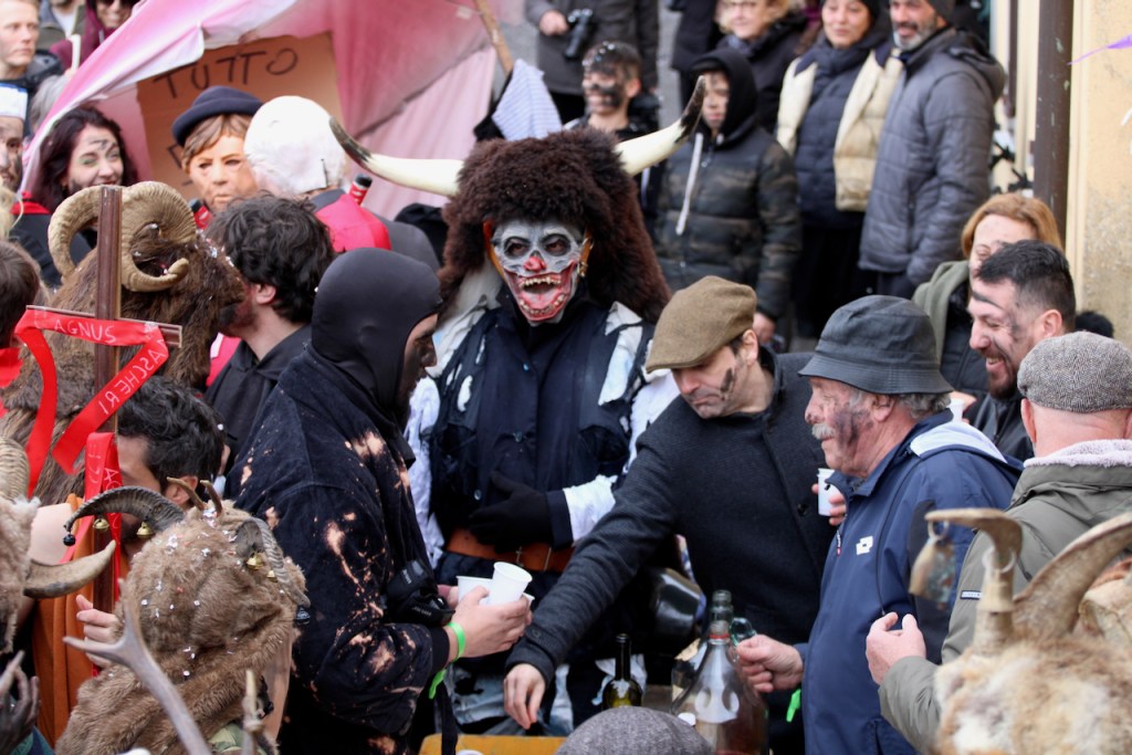 I Brutti, invece, si vestono con pelli di capra o pecora e sulla testa hanno lunghe e grosse corna e il loro viso è tinto di nero. In vita indossano campanacci da mucca, che fanno risuonare danno ritmo allo stesso rito arcaico.