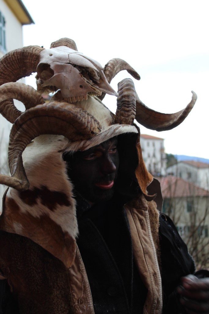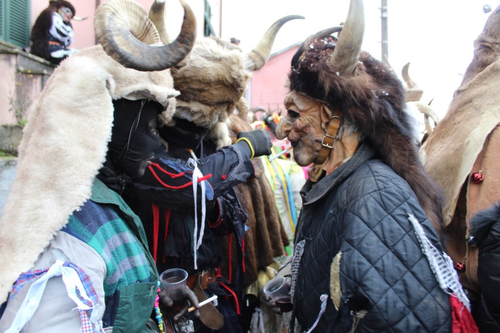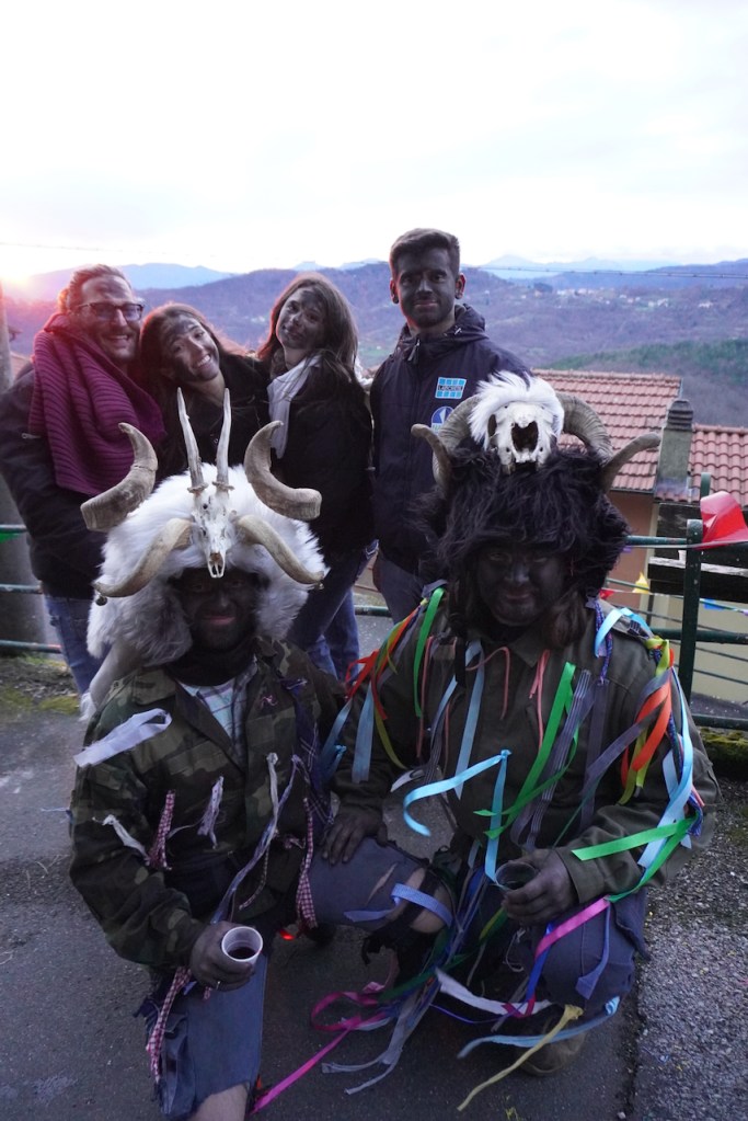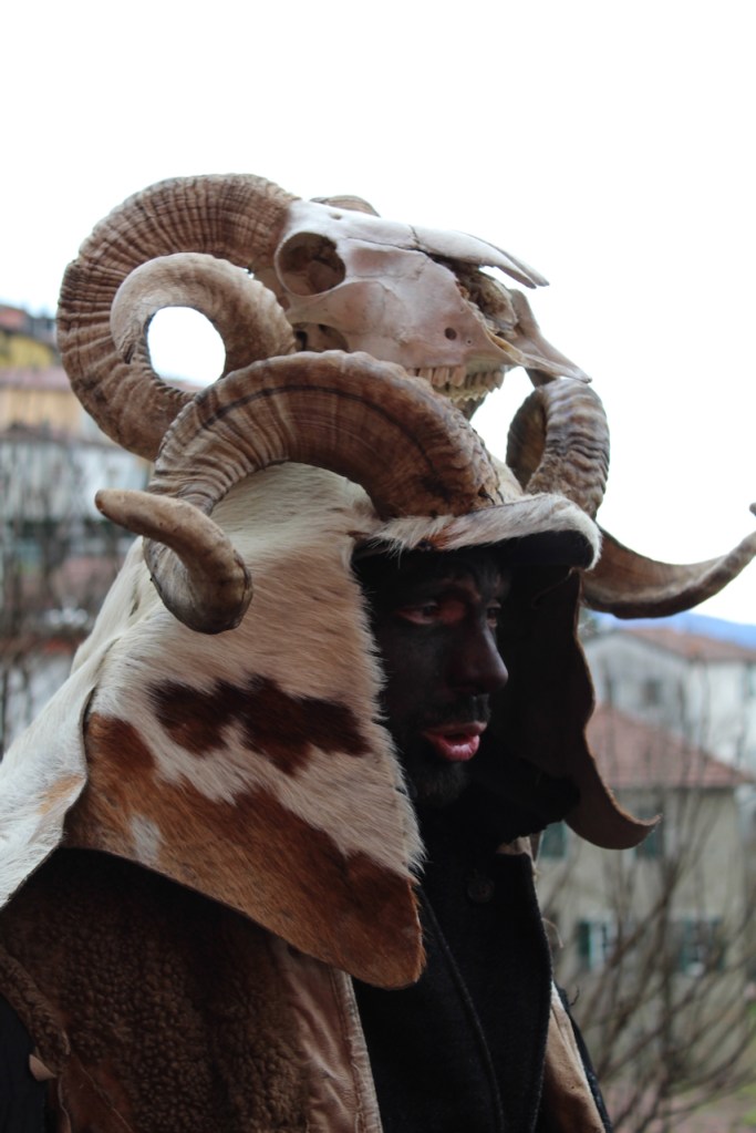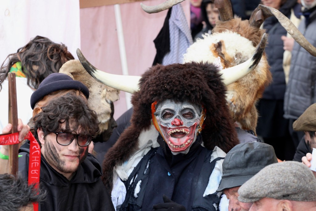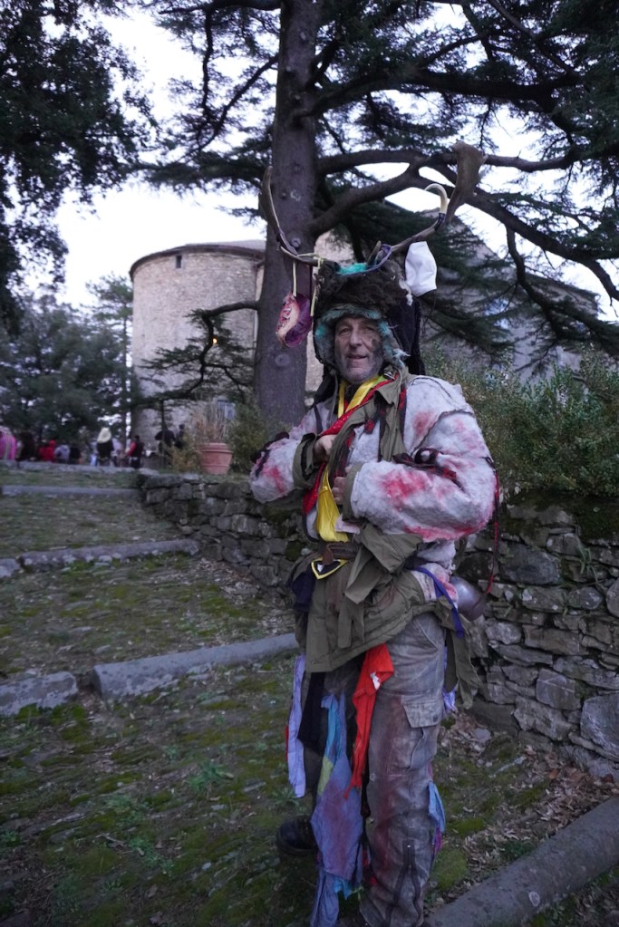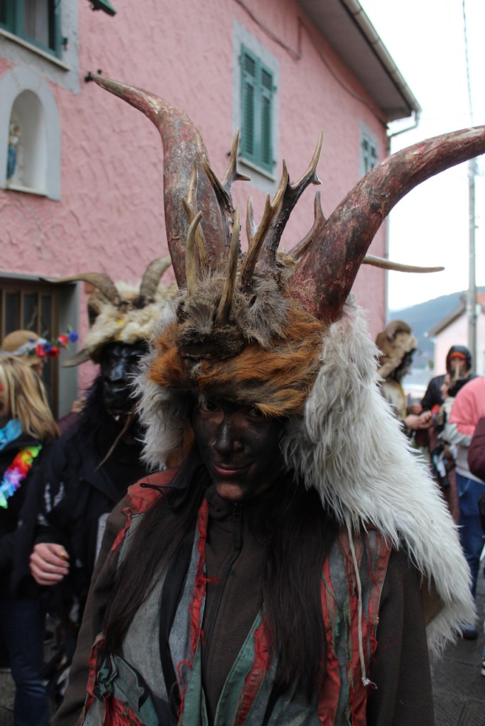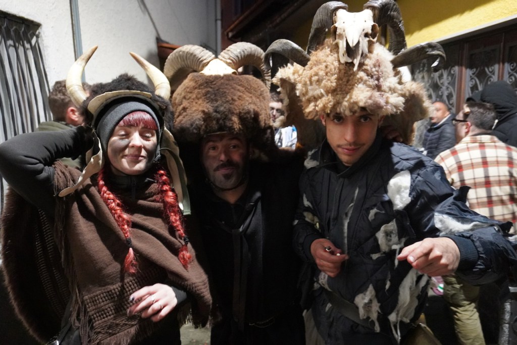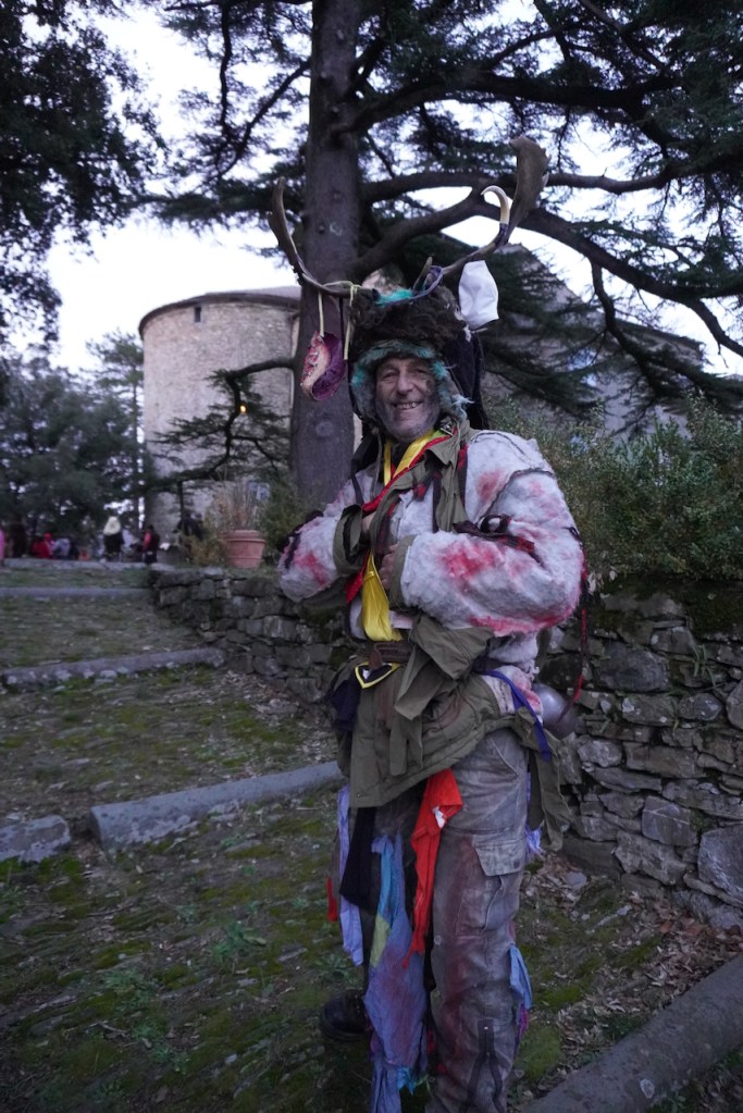 I Brutti, invece, si vestono con pelli di capra o pecora e sulla testa hanno lunghe e grosse corna e il loro viso è tinto di nero. In vita indossano campanacci da mucca, che fanno risuonare danno ritmo allo stesso rito arcaico.