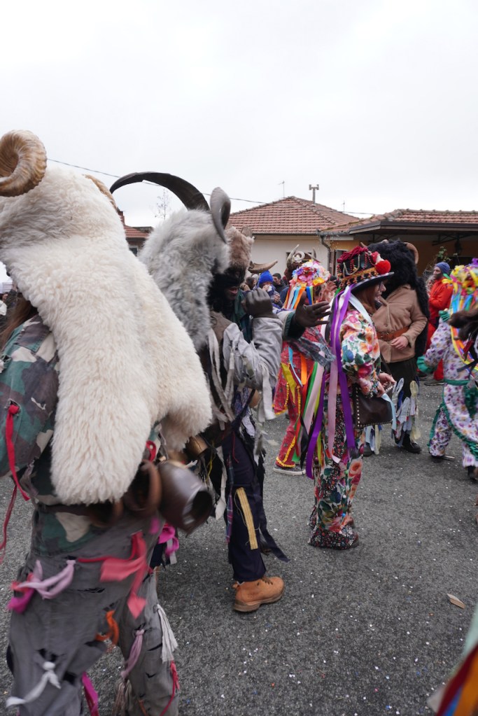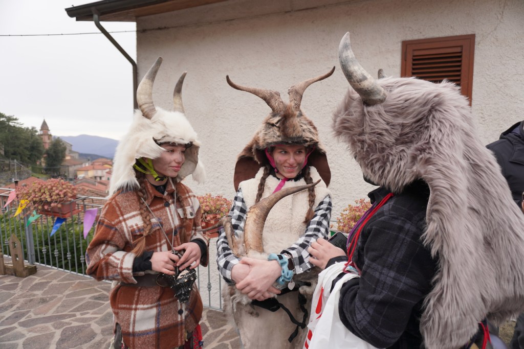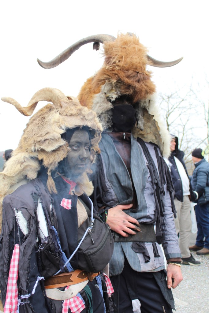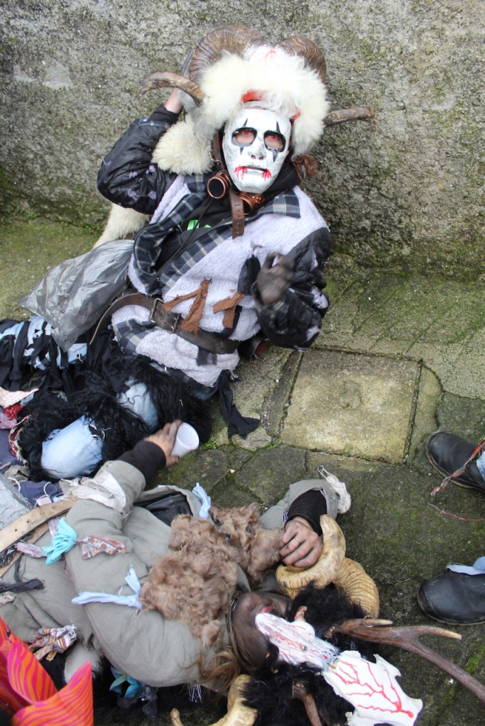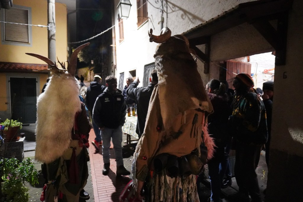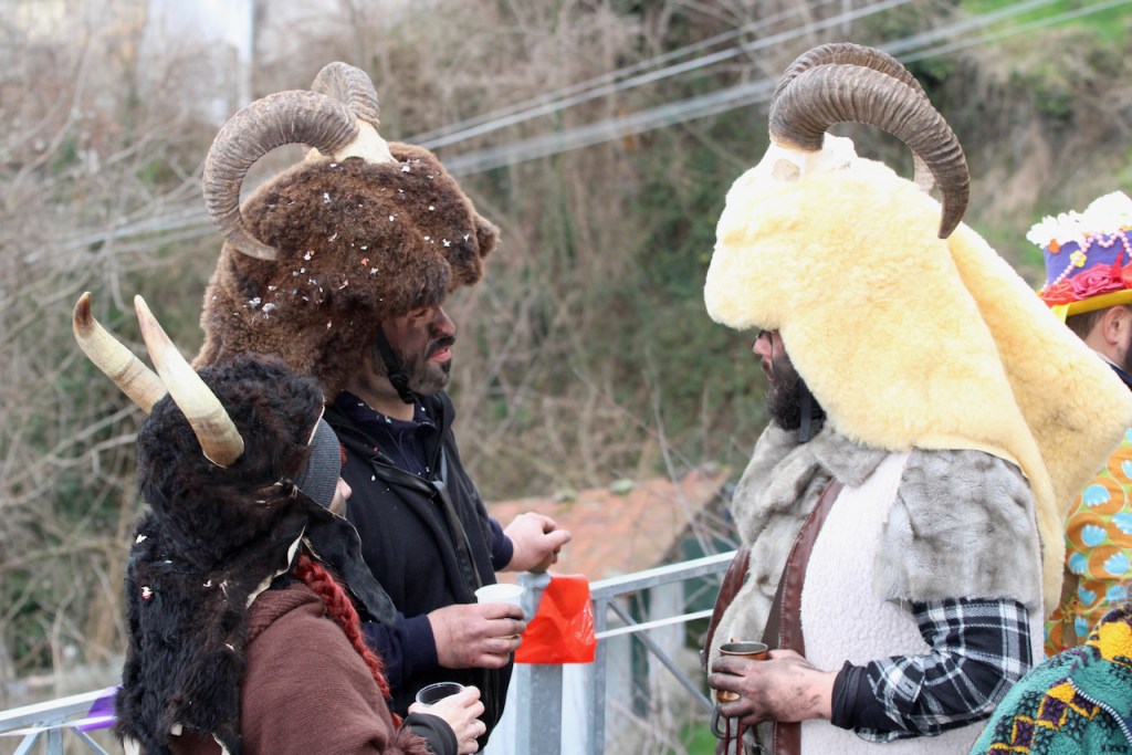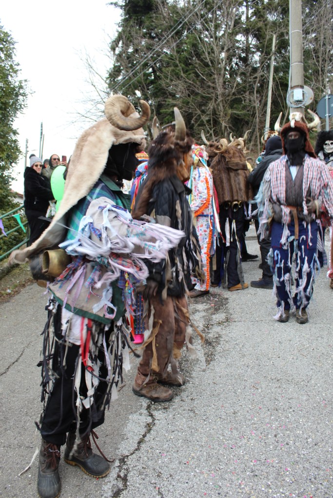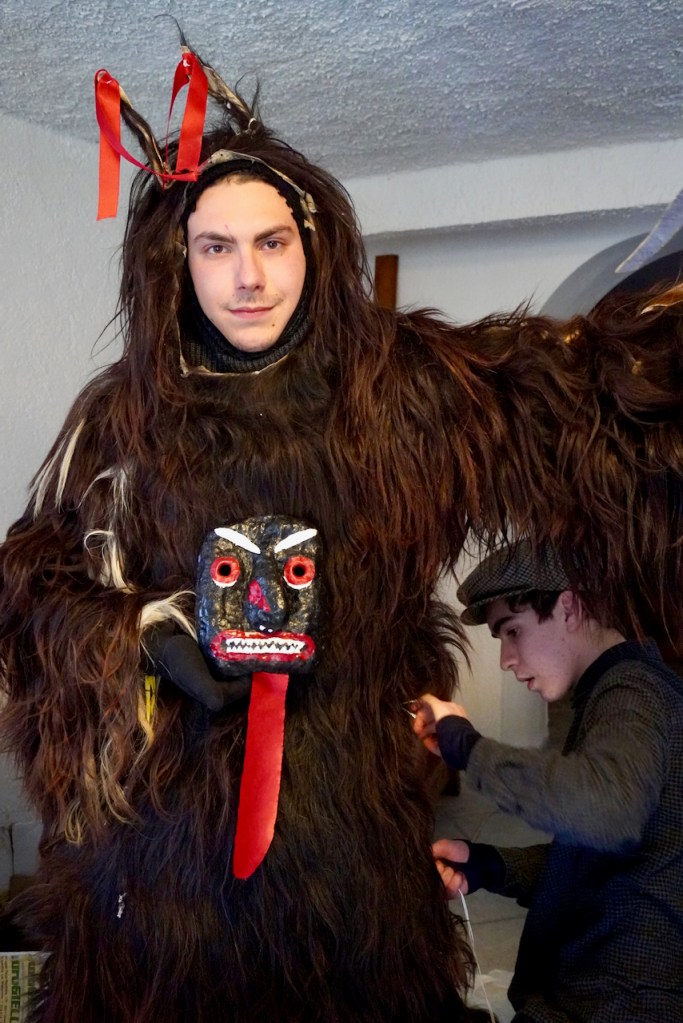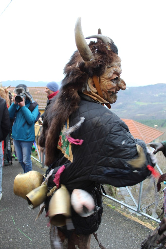 I Brutti, invece, si vestono con pelli di capra o pecora e sulla testa hanno lunghe e grosse corna e il loro viso è tinto di nero. In vita indossano campanacci da mucca, che fanno risuonare danno ritmo allo stesso rito arcaico.