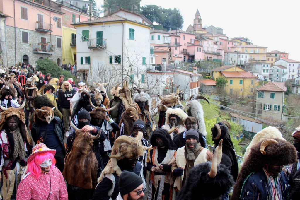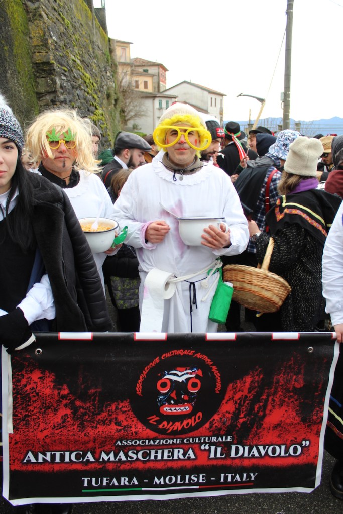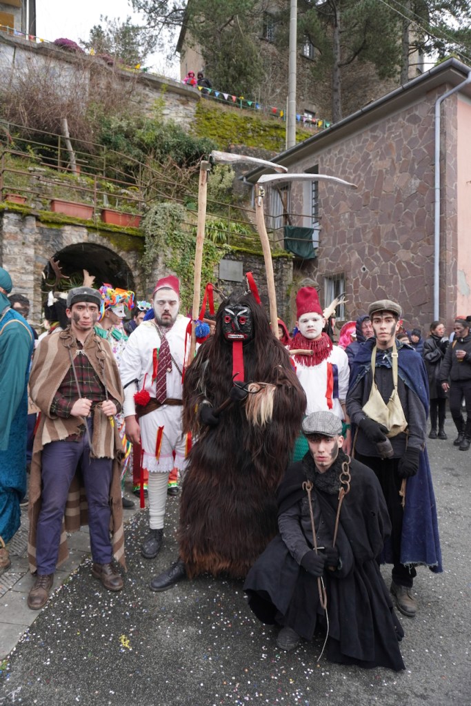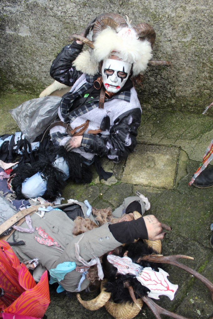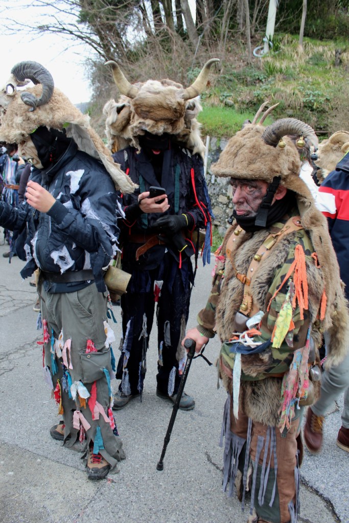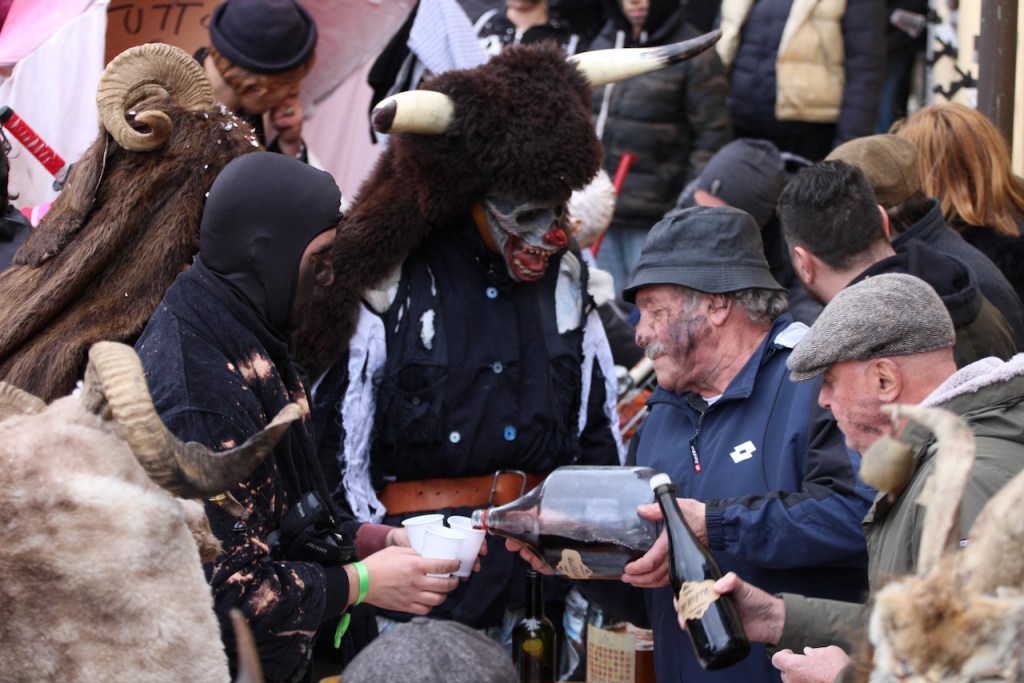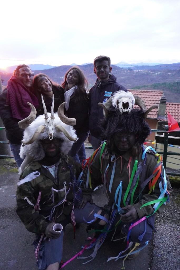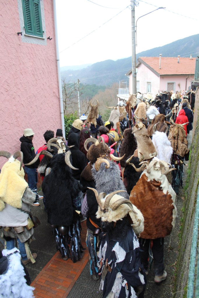 I Brutti, invece, si vestono con pelli di capra o pecora e sulla testa hanno lunghe e grosse corna e il loro viso è tinto di nero. In vita indossano campanacci da mucca, che fanno risuonare danno ritmo allo stesso rito arcaico.