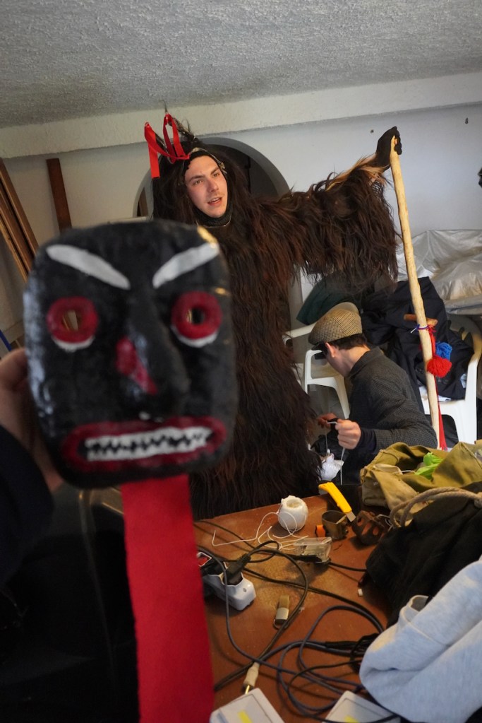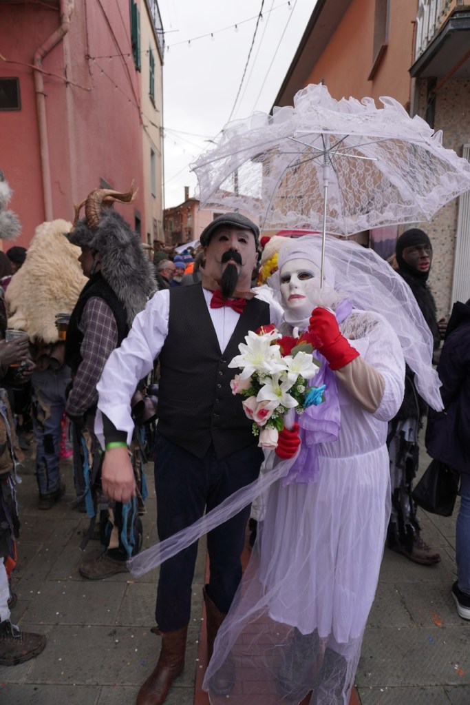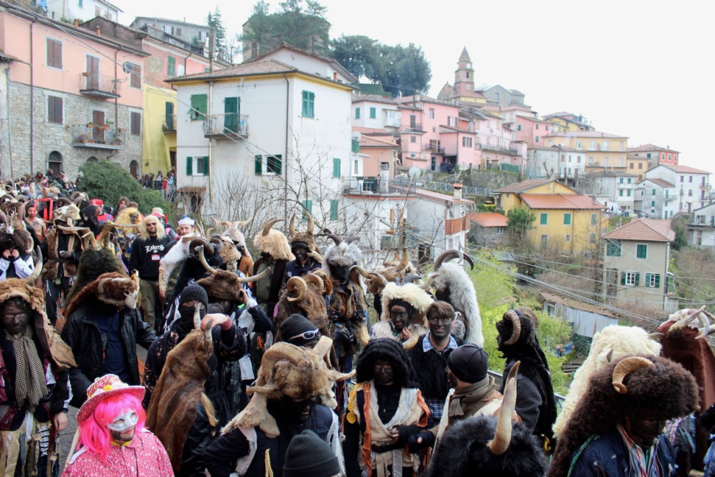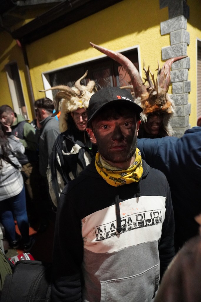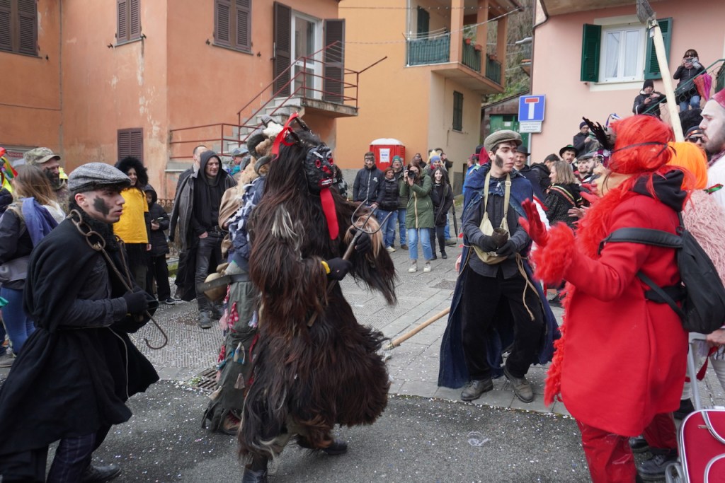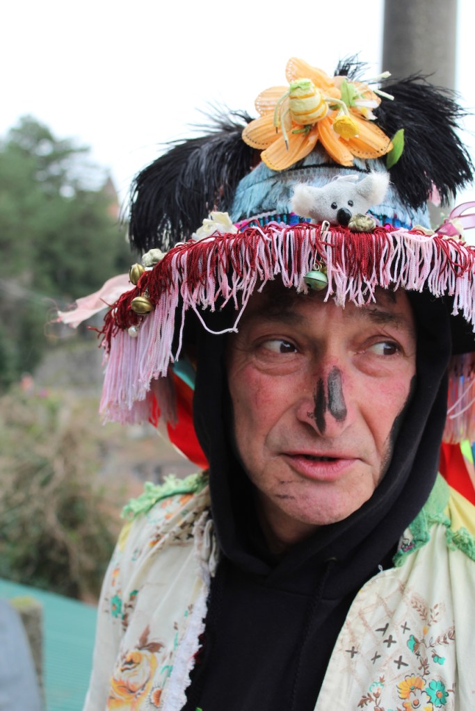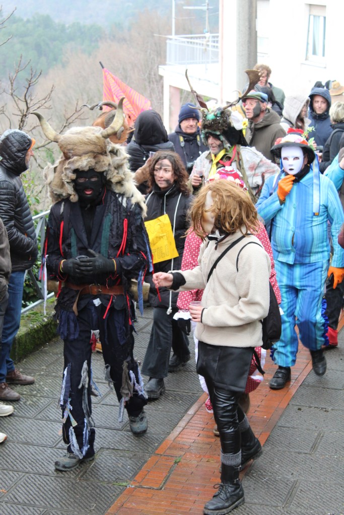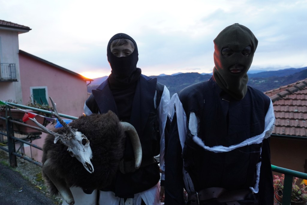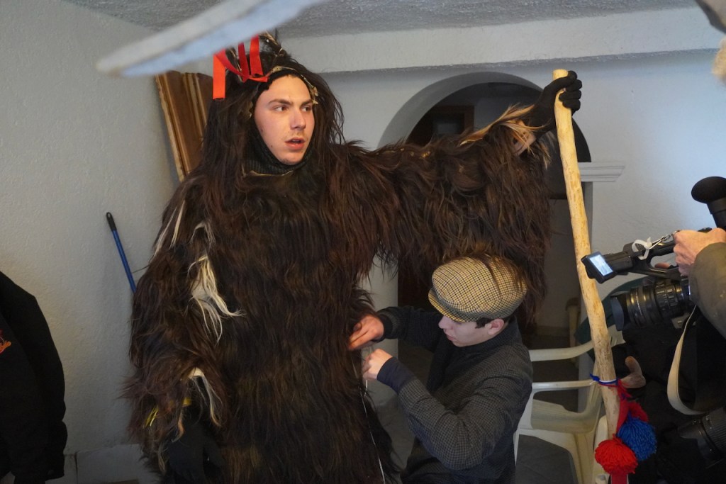 I Brutti, invece, si vestono con pelli di capra o pecora e sulla testa hanno lunghe e grosse corna e il loro viso è tinto di nero. In vita indossano campanacci da mucca, che fanno risuonare danno ritmo allo stesso rito arcaico.
