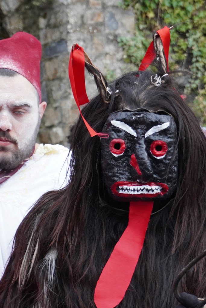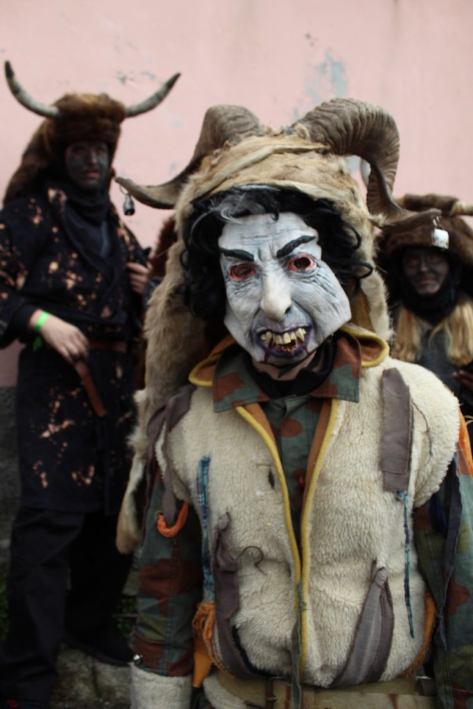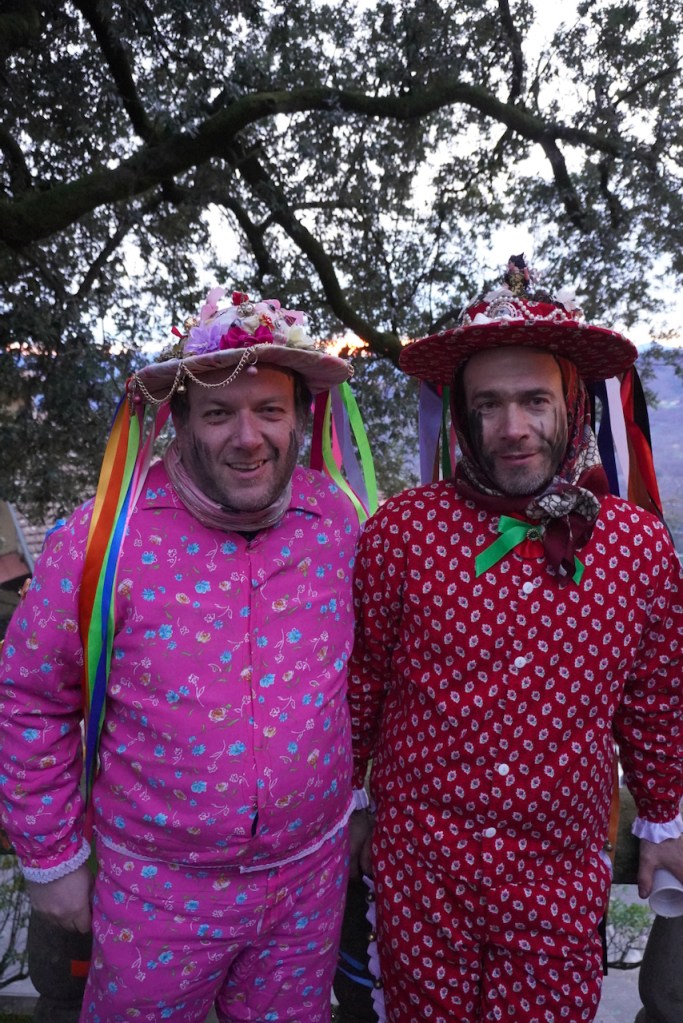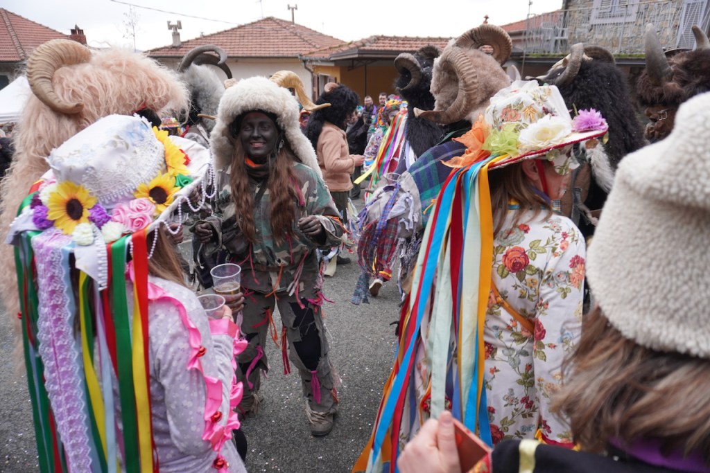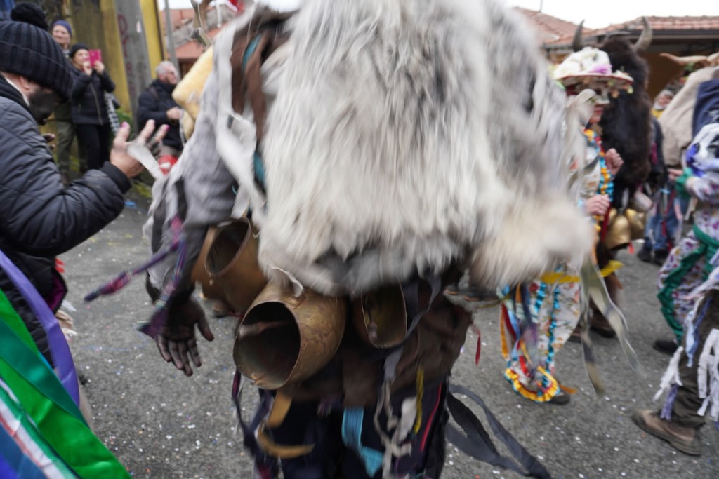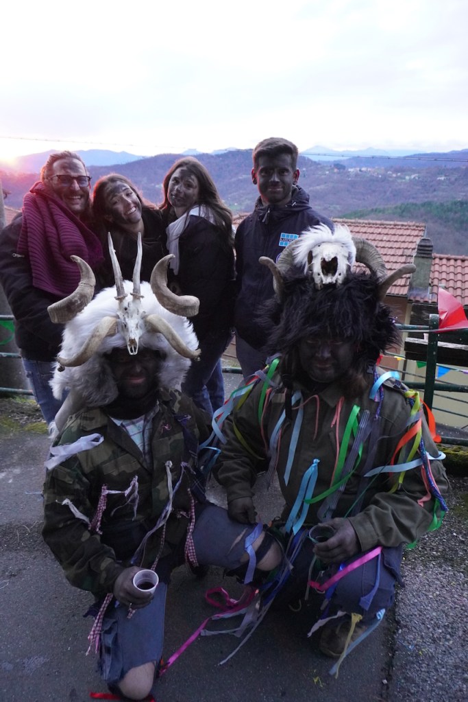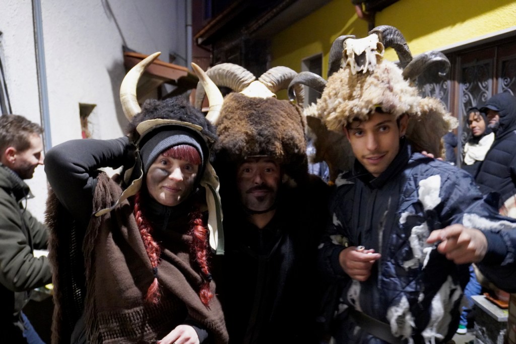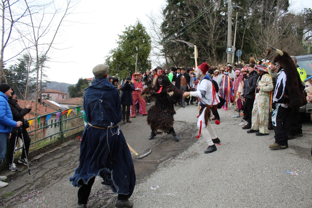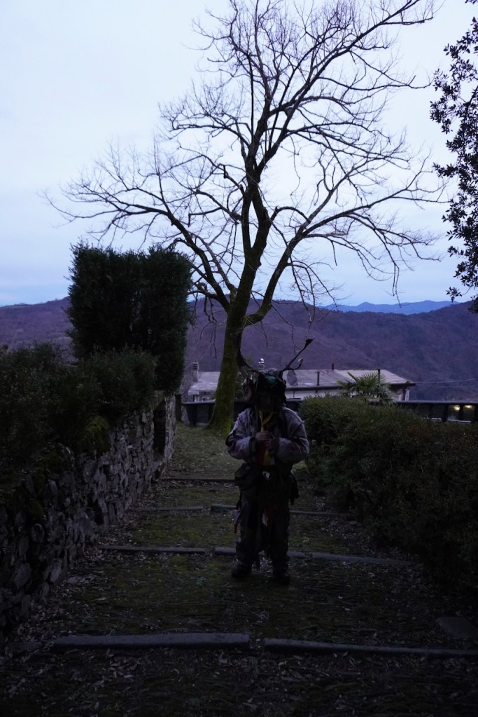 I Brutti, invece, si vestono con pelli di capra o pecora e sulla testa hanno lunghe e grosse corna e il loro viso è tinto di nero. In vita indossano campanacci da mucca, che fanno risuonare danno ritmo allo stesso rito arcaico.