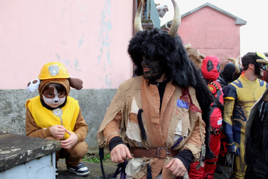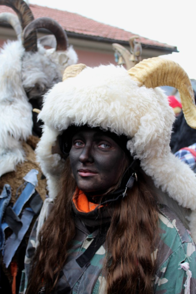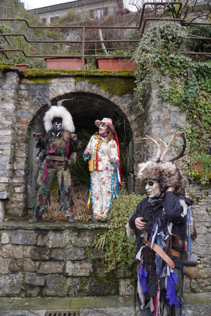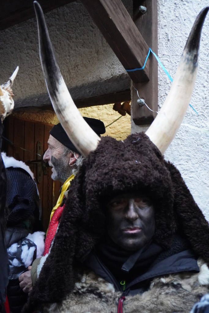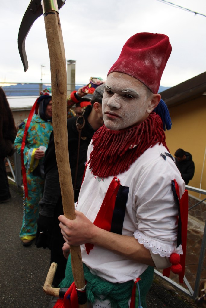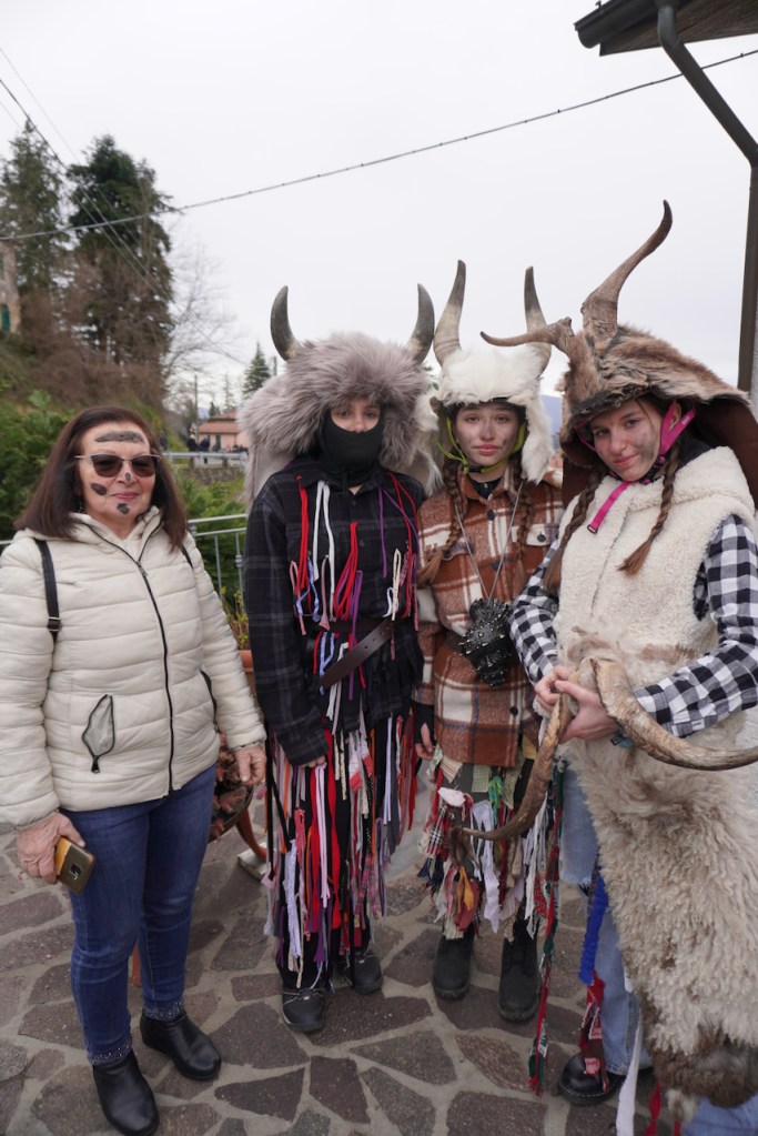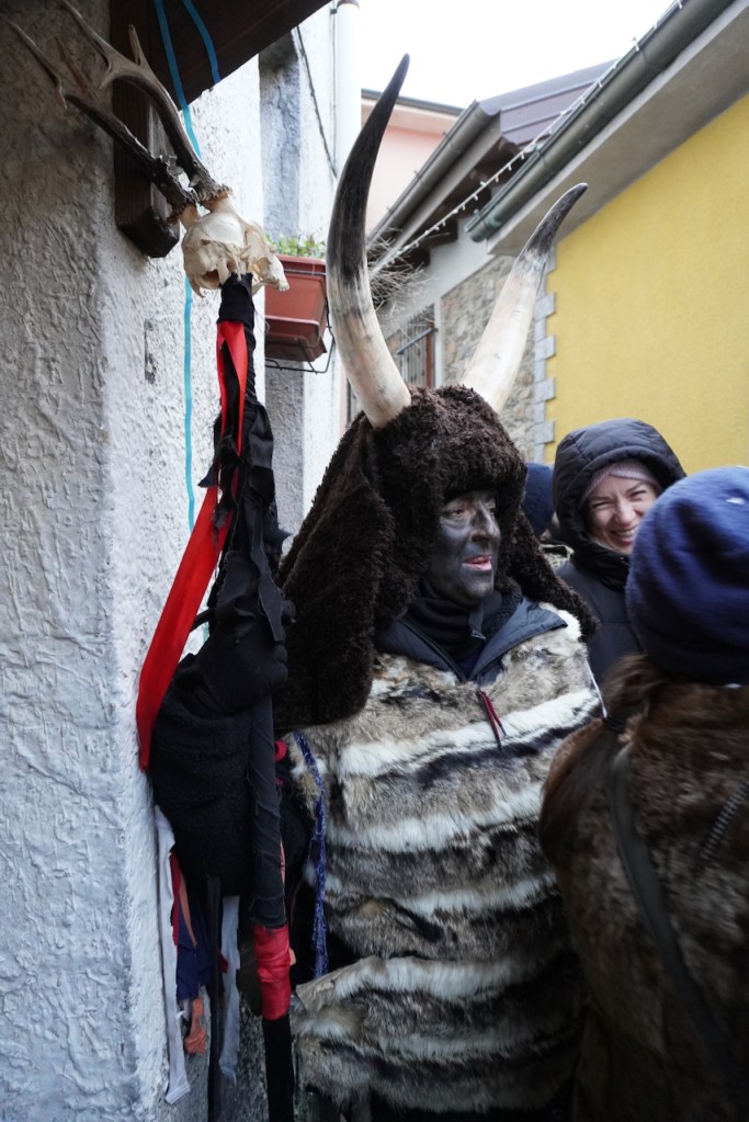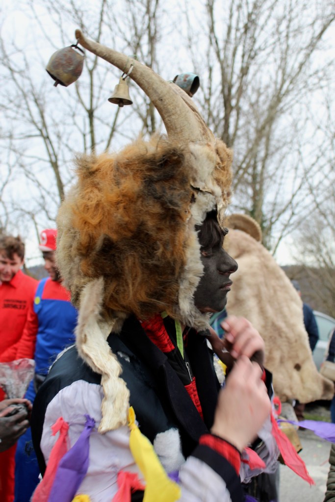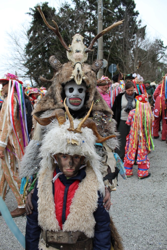I Brutti, invece, si vestono con pelli di capra o pecora e sulla testa hanno lunghe e grosse corna e il loro viso è tinto di nero. In vita indossano campanacci da mucca, che fanno risuonare danno ritmo allo stesso rito arcaico.