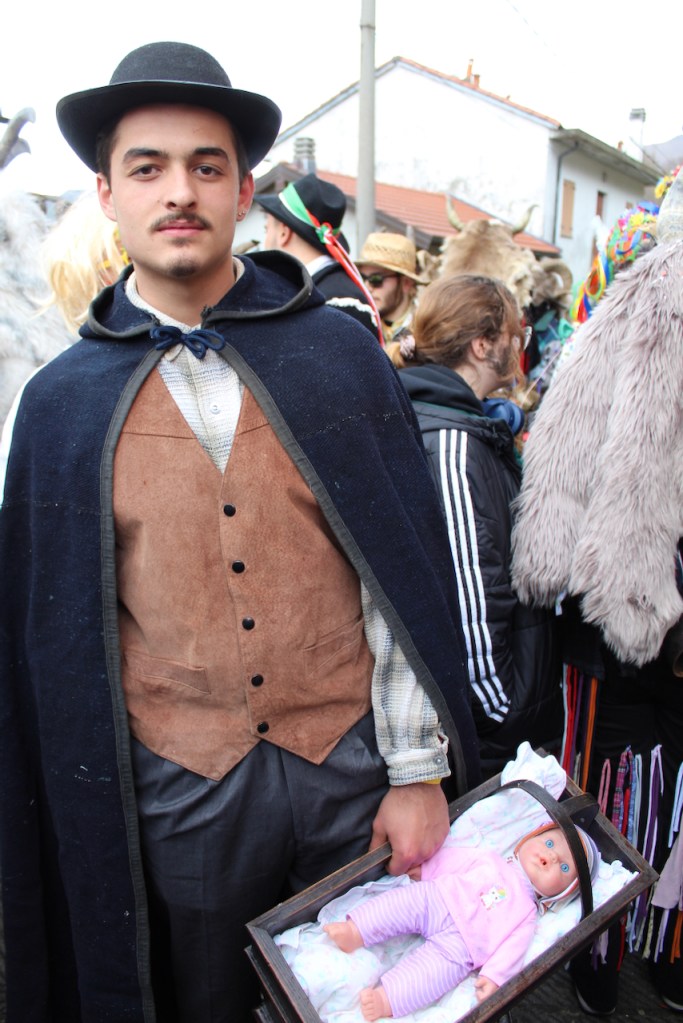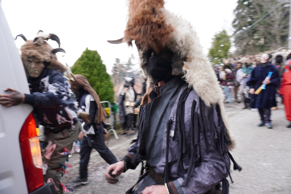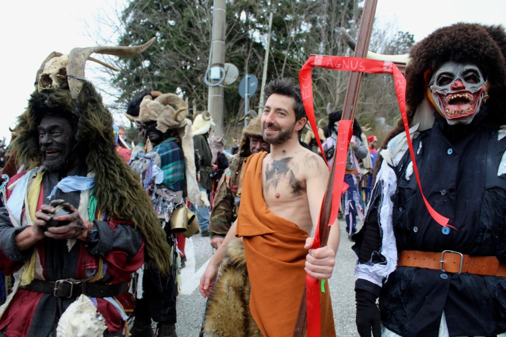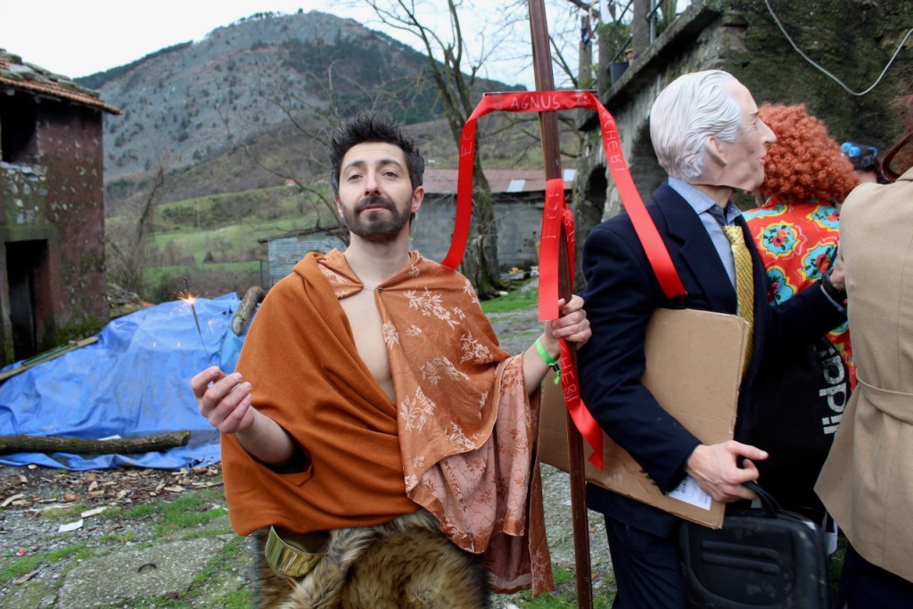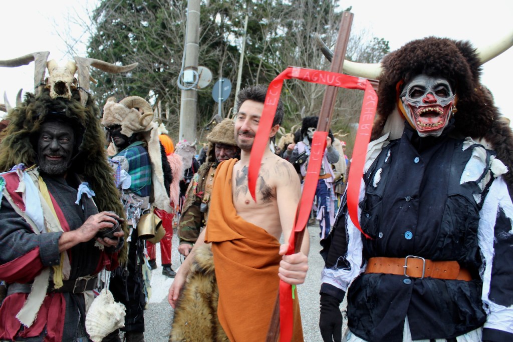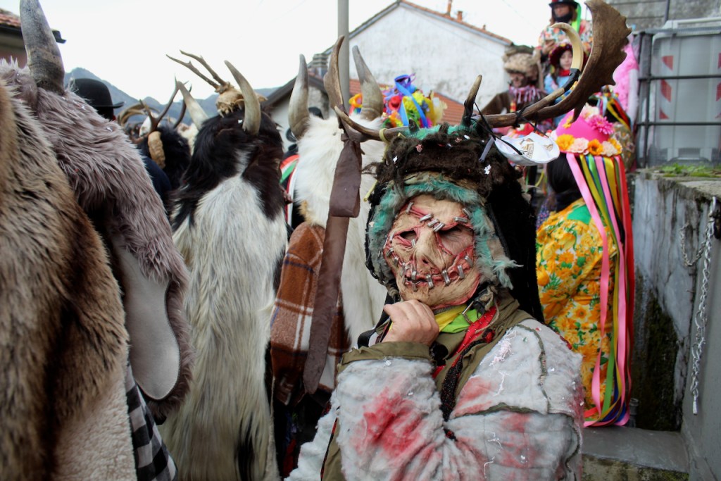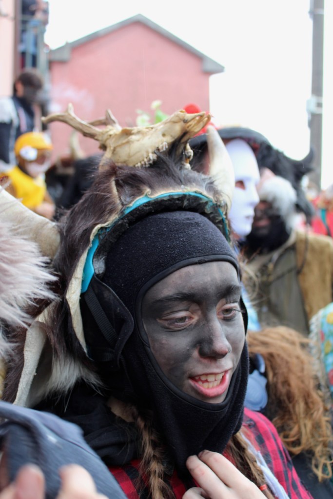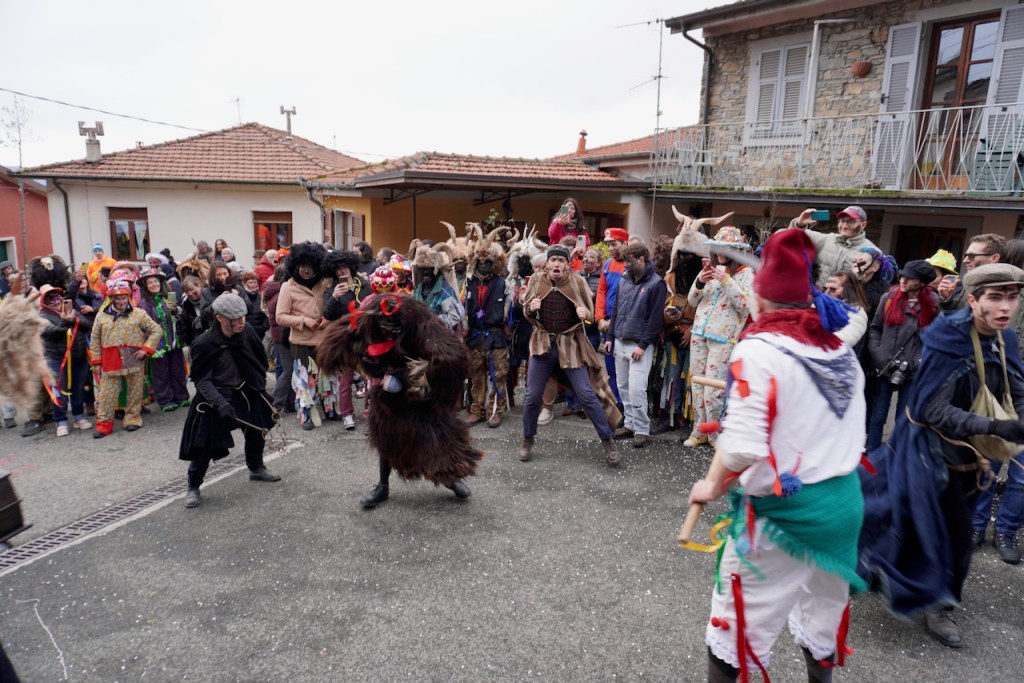 I Brutti, invece, si vestono con pelli di capra o pecora e sulla testa hanno lunghe e grosse corna e il loro viso è tinto di nero. In vita indossano campanacci da mucca, che fanno risuonare danno ritmo allo stesso rito arcaico.