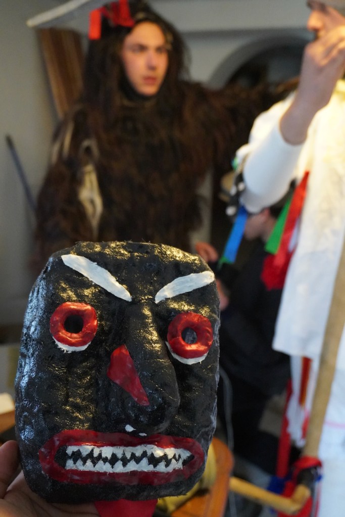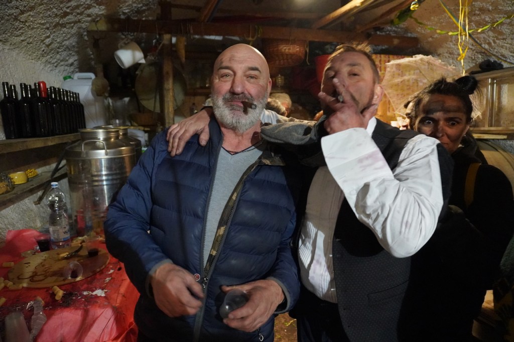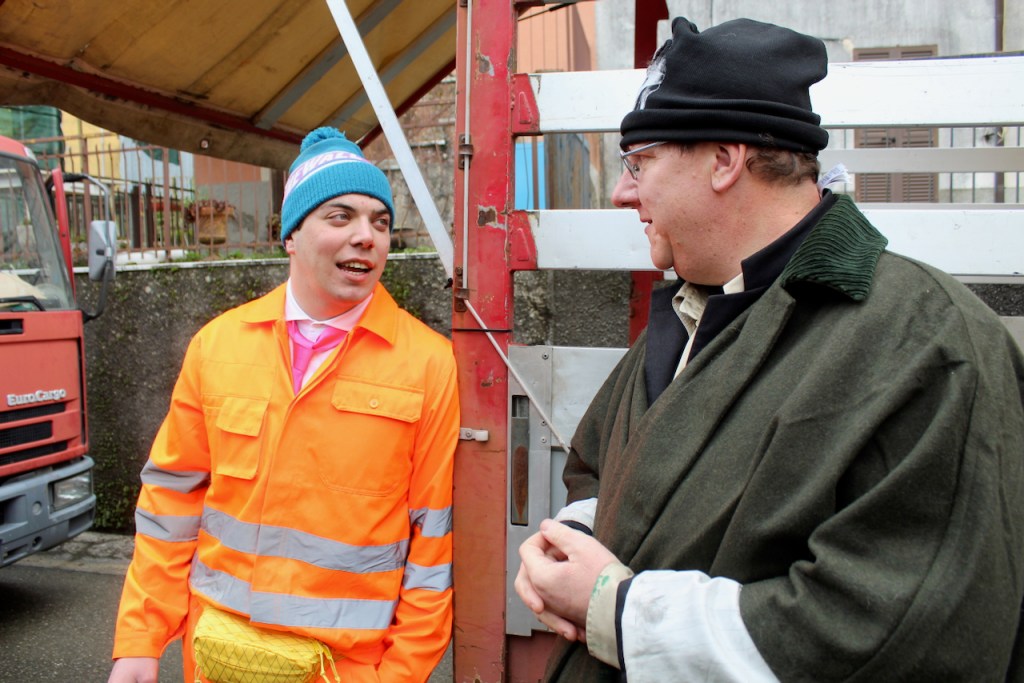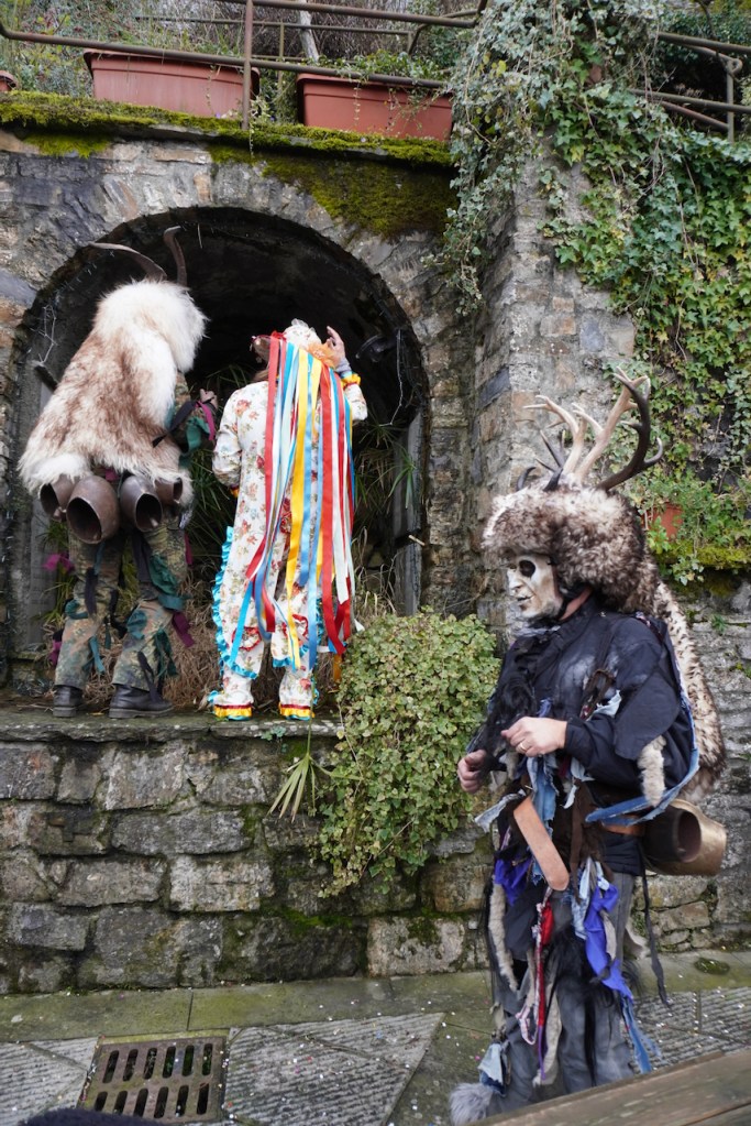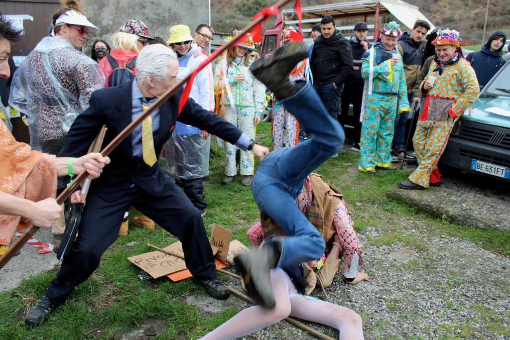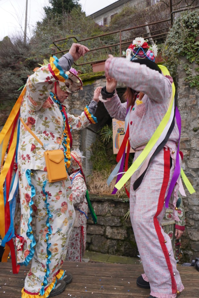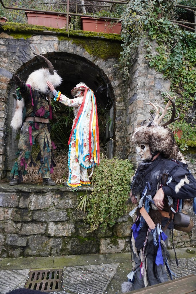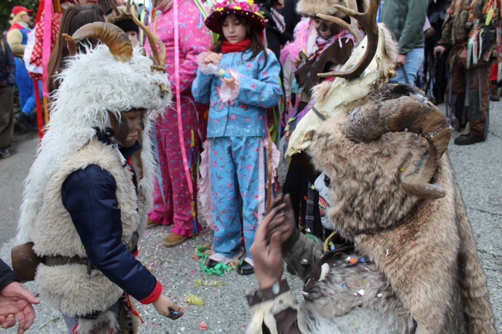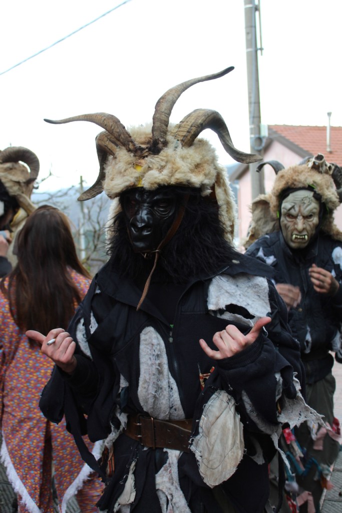 I Brutti, invece, si vestono con pelli di capra o pecora e sulla testa hanno lunghe e grosse corna e il loro viso è tinto di nero. In vita indossano campanacci da mucca, che fanno risuonare danno ritmo allo stesso rito arcaico.