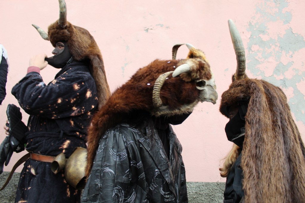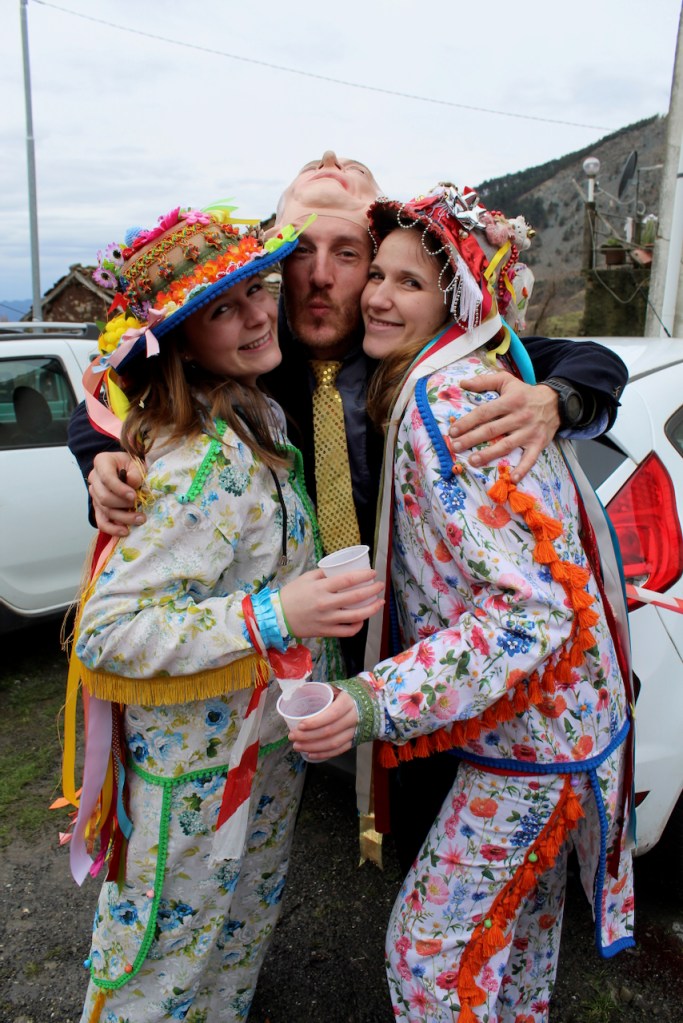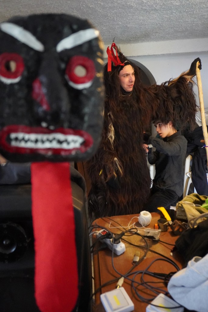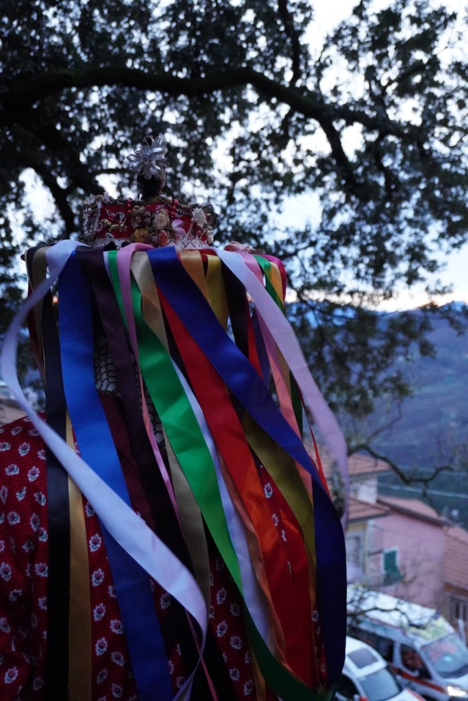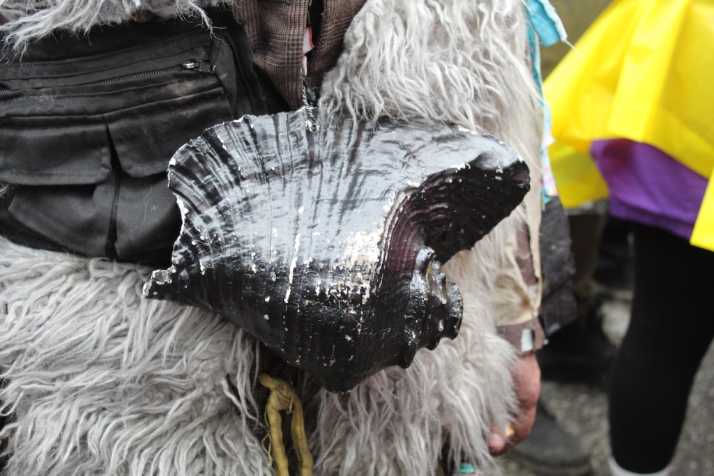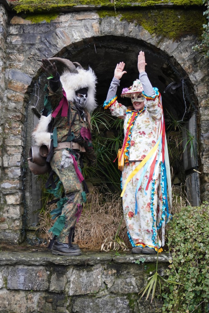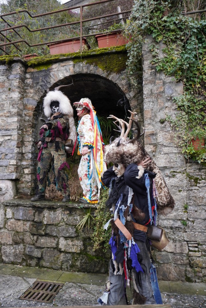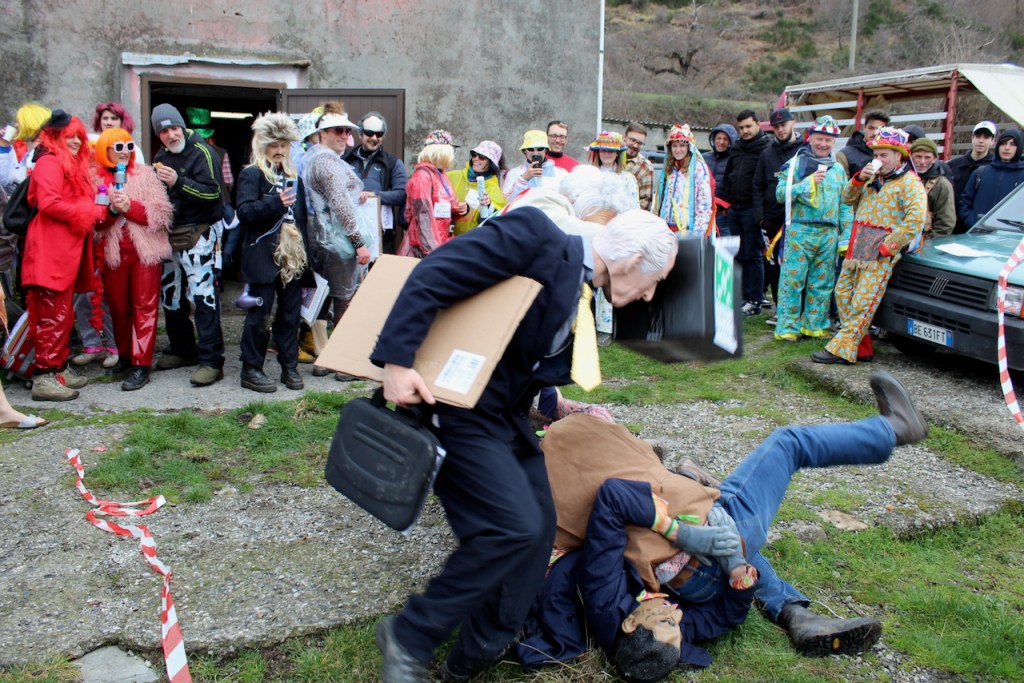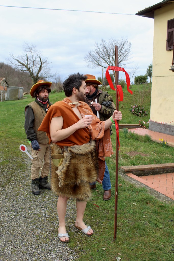 I Brutti, invece, si vestono con pelli di capra o pecora e sulla testa hanno lunghe e grosse corna e il loro viso è tinto di nero. In vita indossano campanacci da mucca, che fanno risuonare danno ritmo allo stesso rito arcaico.