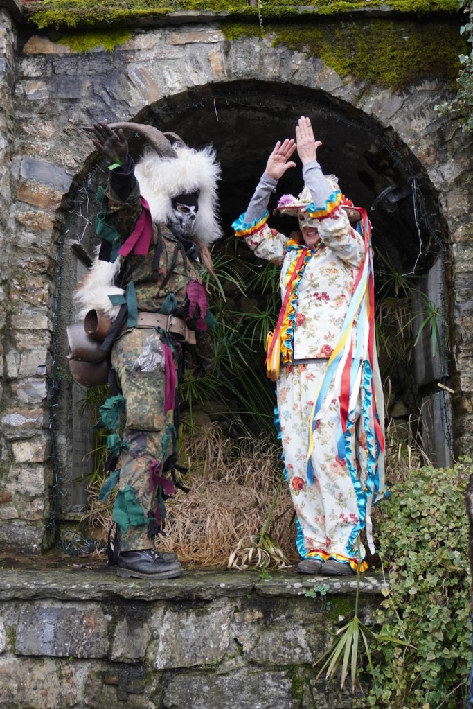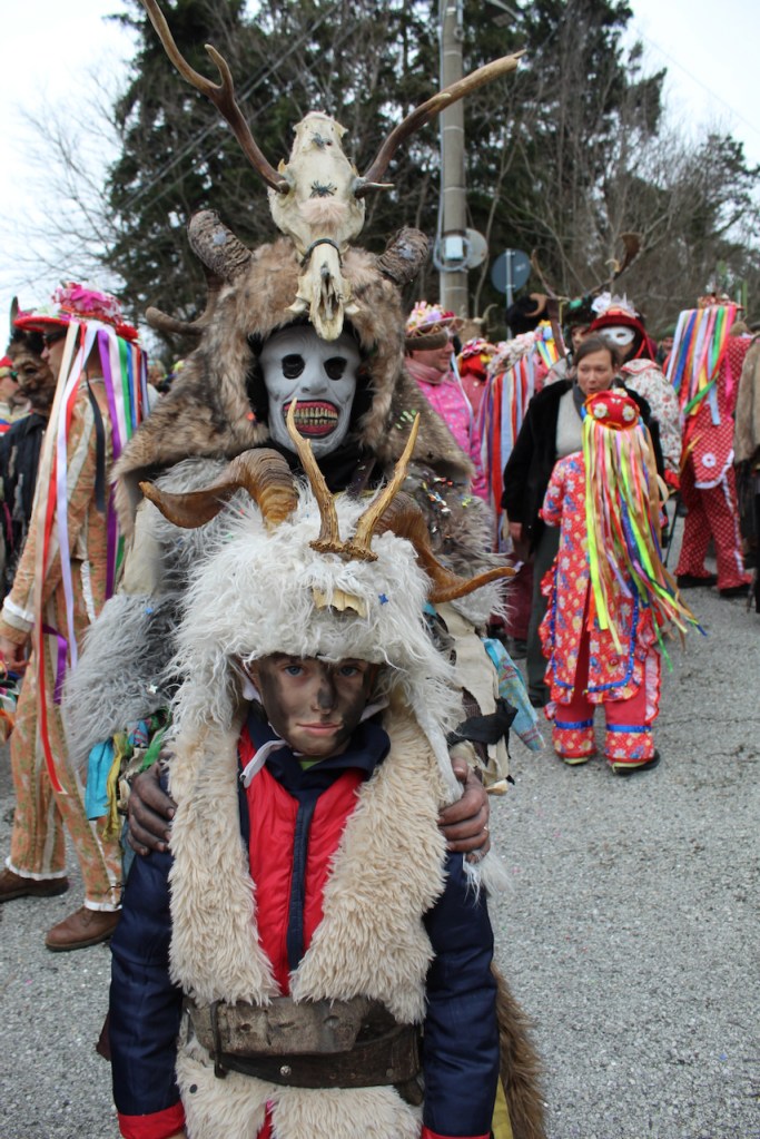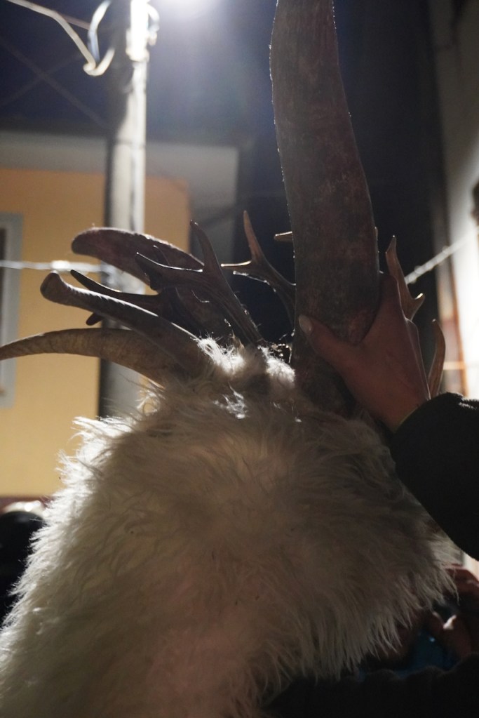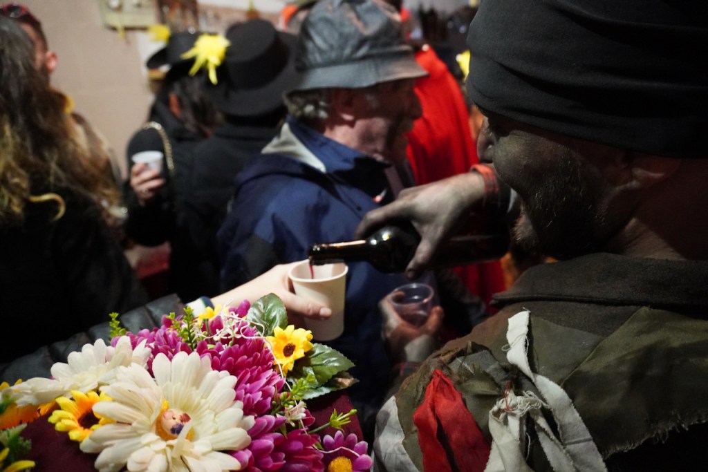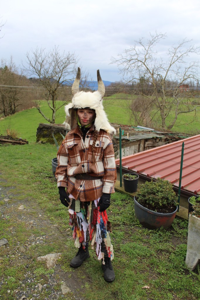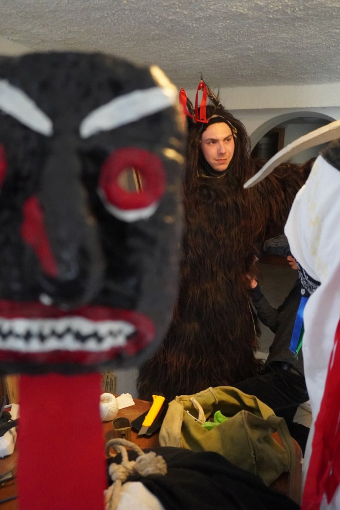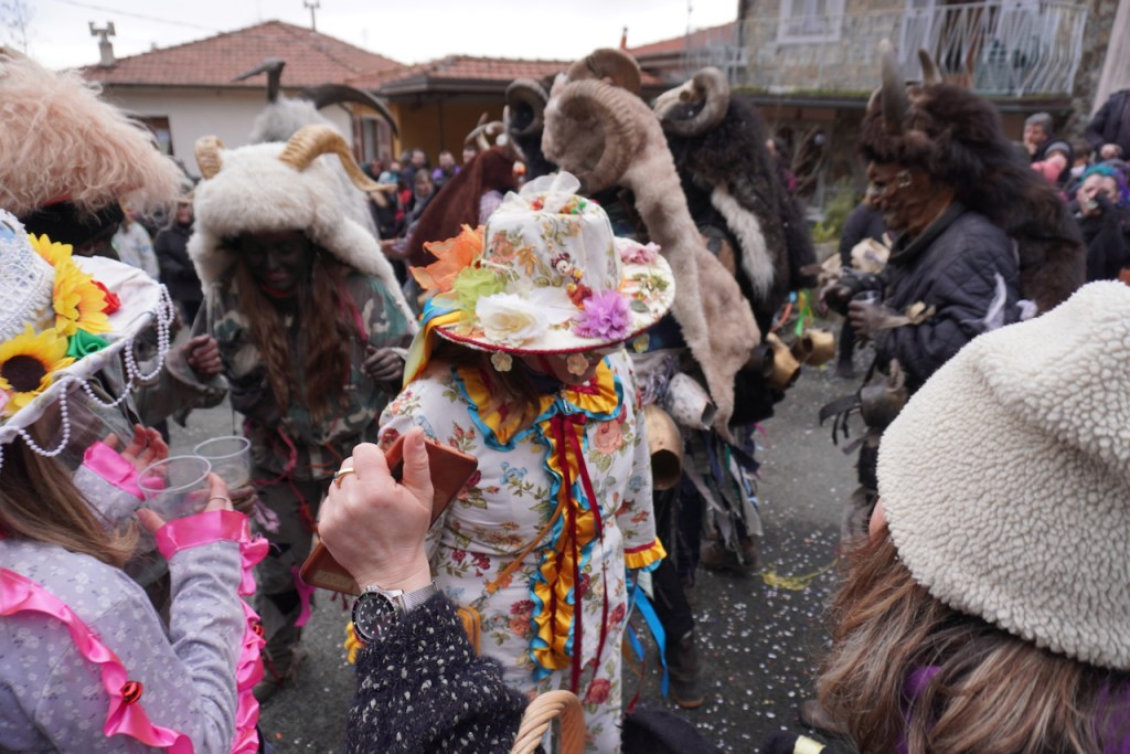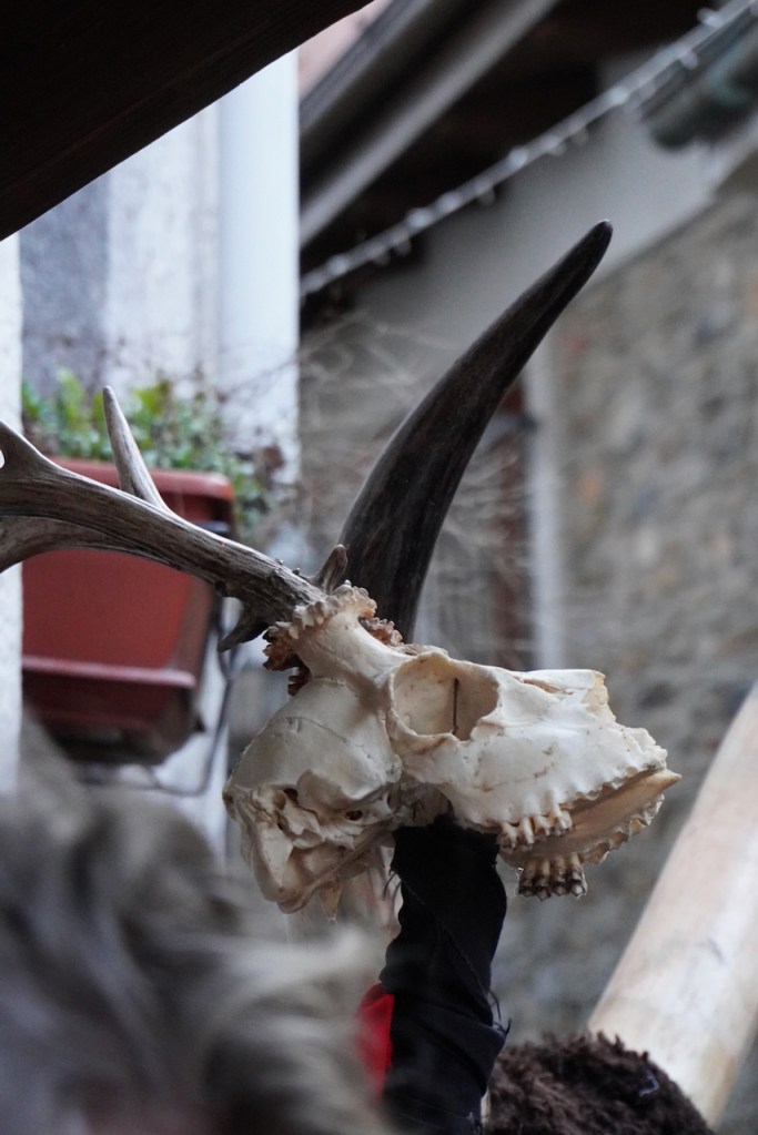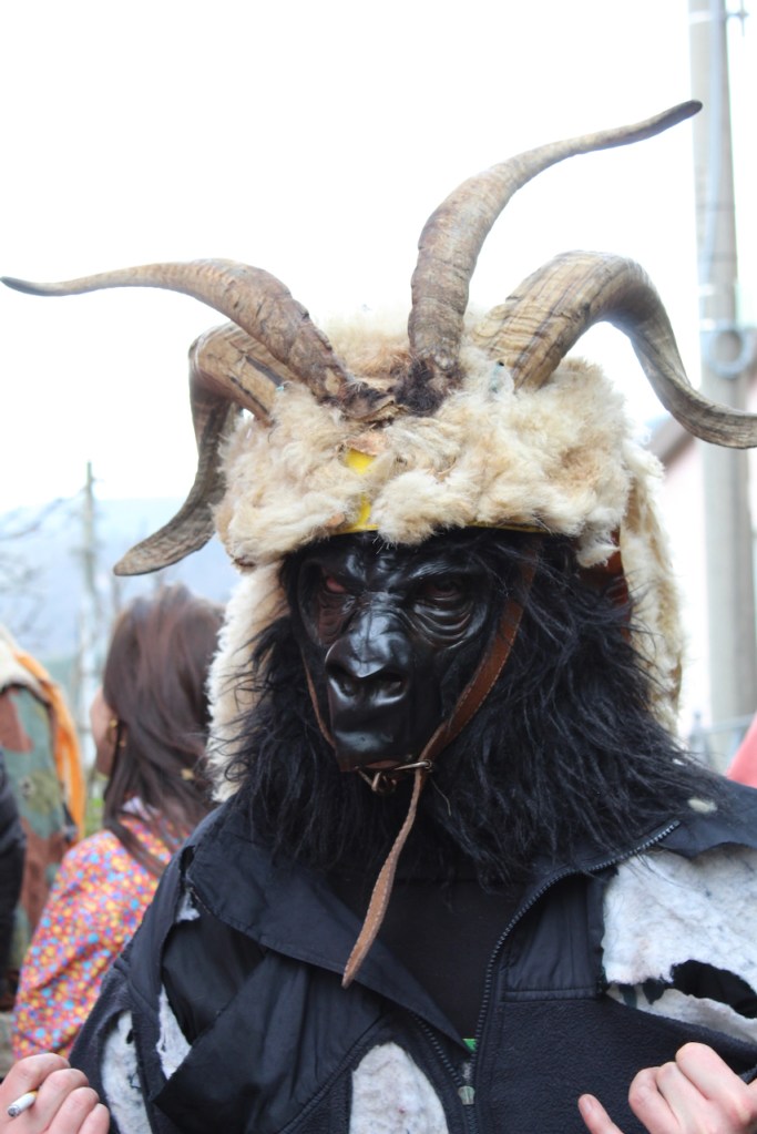 I Brutti, invece, si vestono con pelli di capra o pecora e sulla testa hanno lunghe e grosse corna e il loro viso è tinto di nero. In vita indossano campanacci da mucca, che fanno risuonare danno ritmo allo stesso rito arcaico.