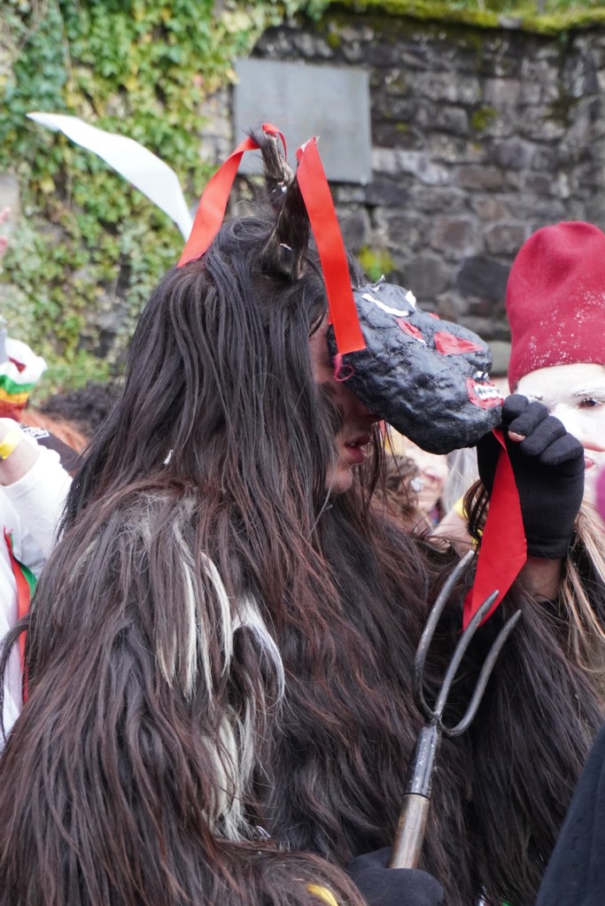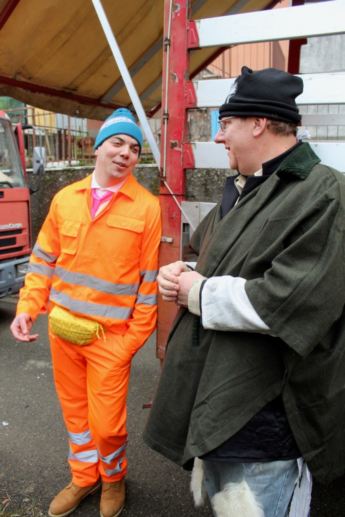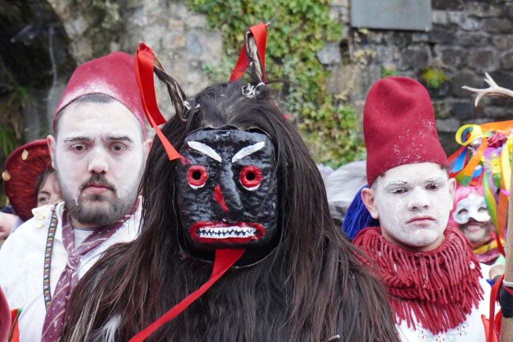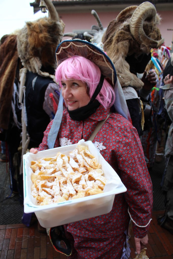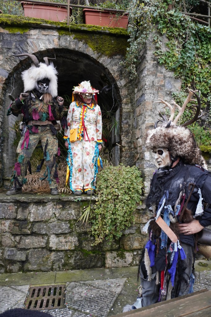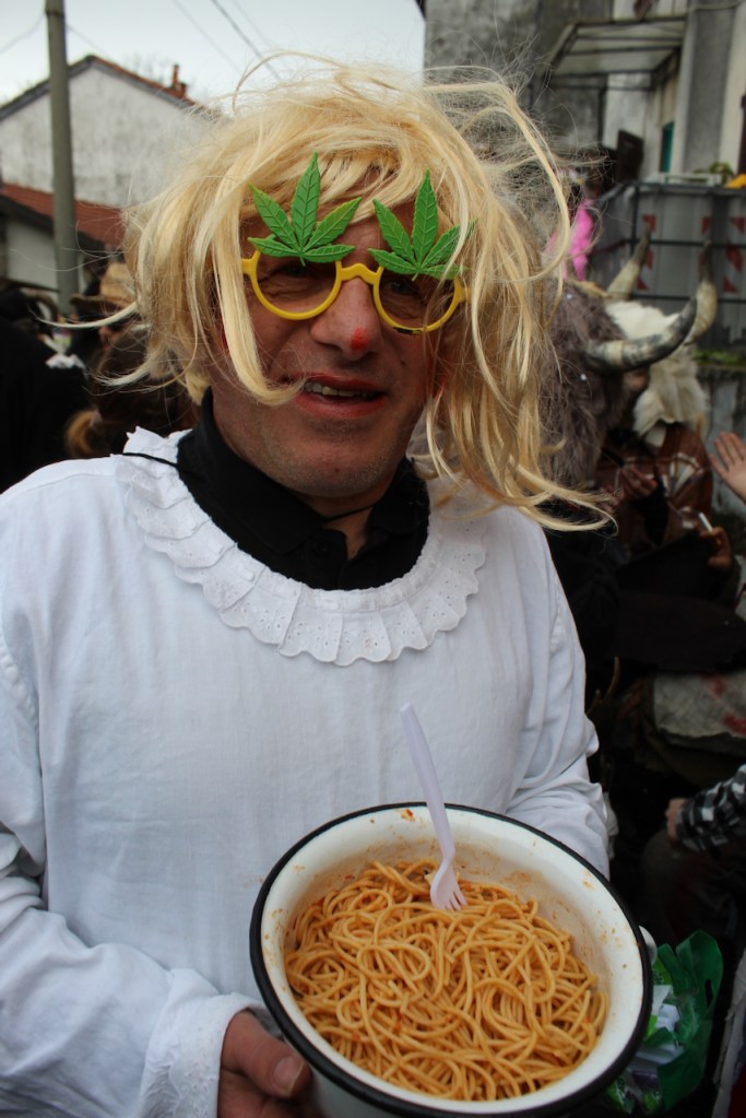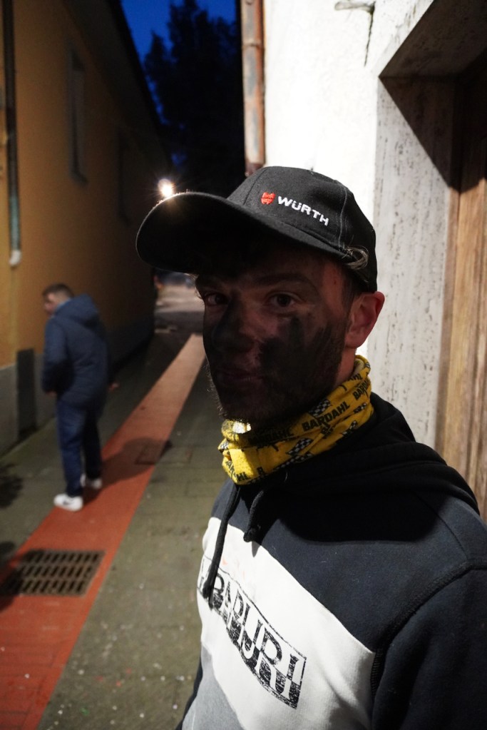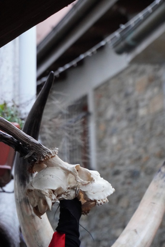 I Brutti, invece, si vestono con pelli di capra o pecora e sulla testa hanno lunghe e grosse corna e il loro viso è tinto di nero. In vita indossano campanacci da mucca, che fanno risuonare danno ritmo allo stesso rito arcaico.