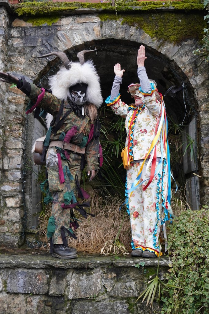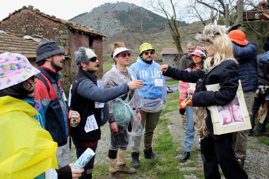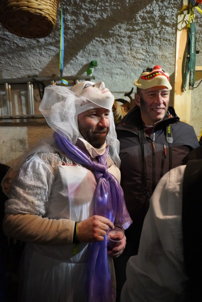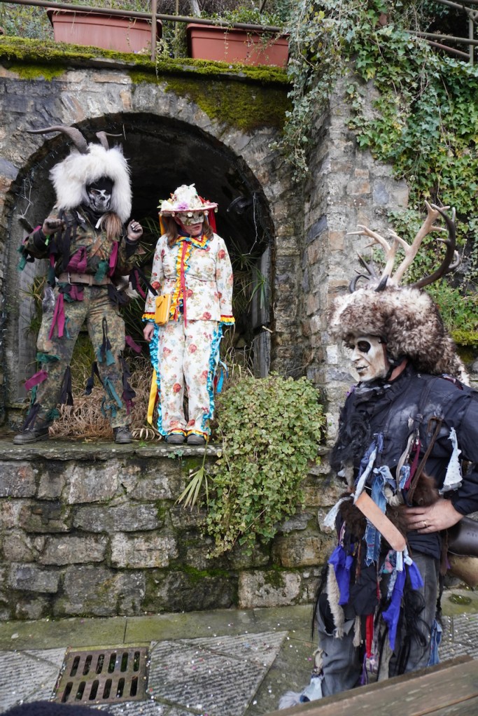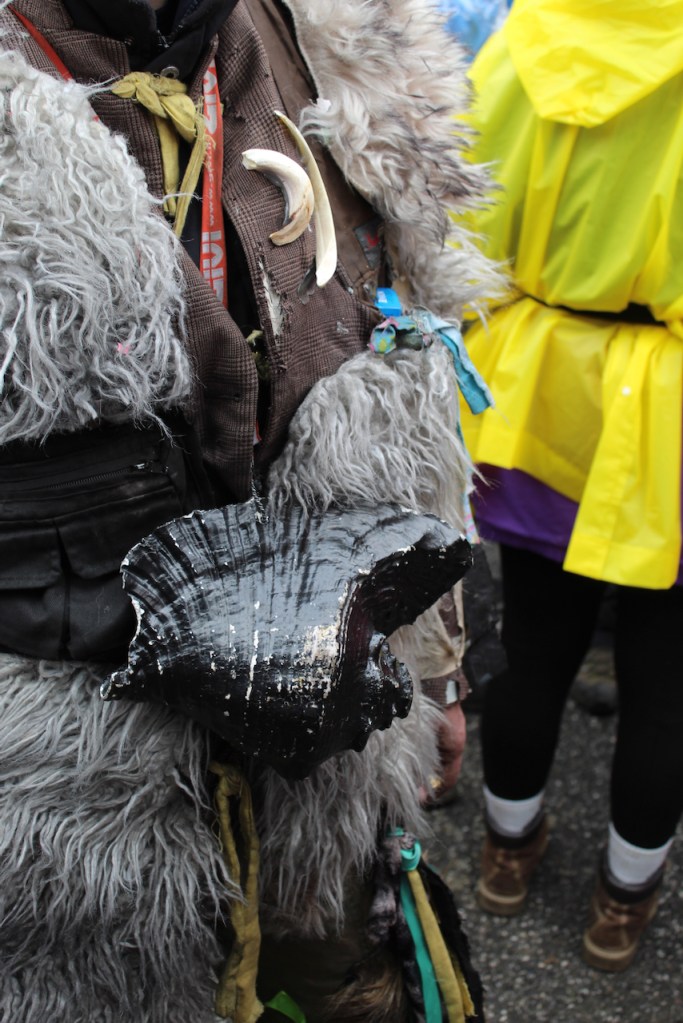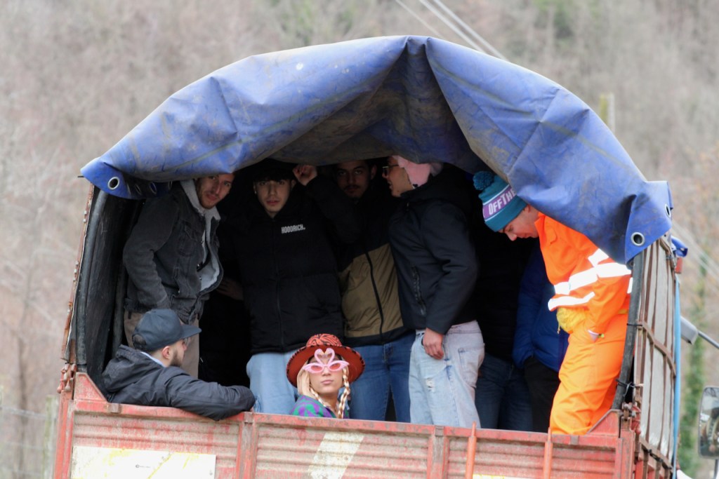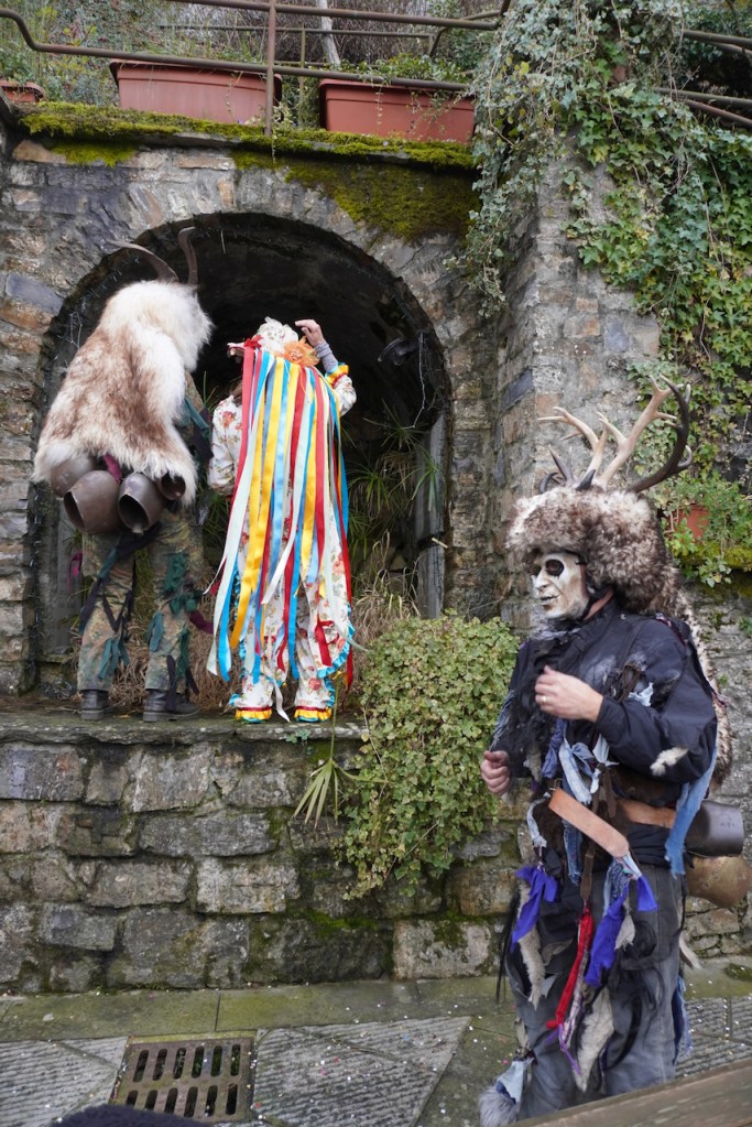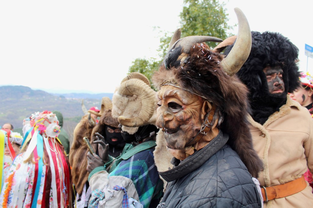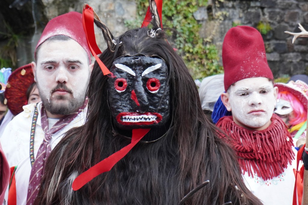 I Brutti, invece, si vestono con pelli di capra o pecora e sulla testa hanno lunghe e grosse corna e il loro viso è tinto di nero. In vita indossano campanacci da mucca, che fanno risuonare danno ritmo allo stesso rito arcaico.