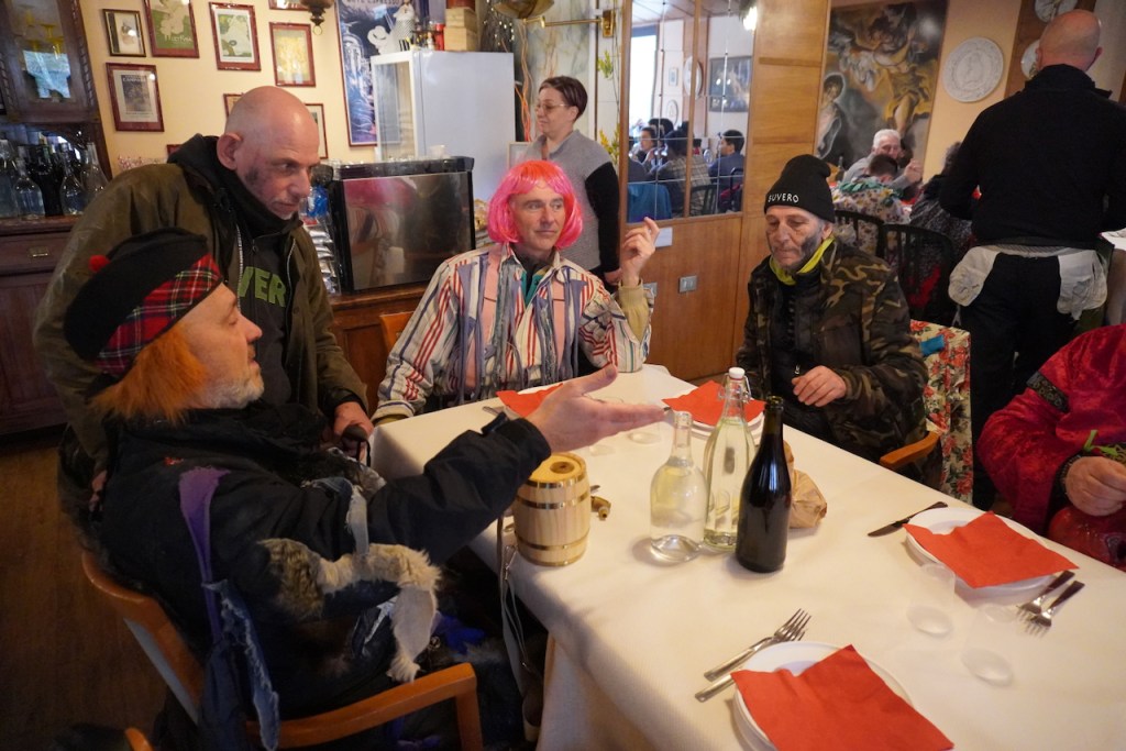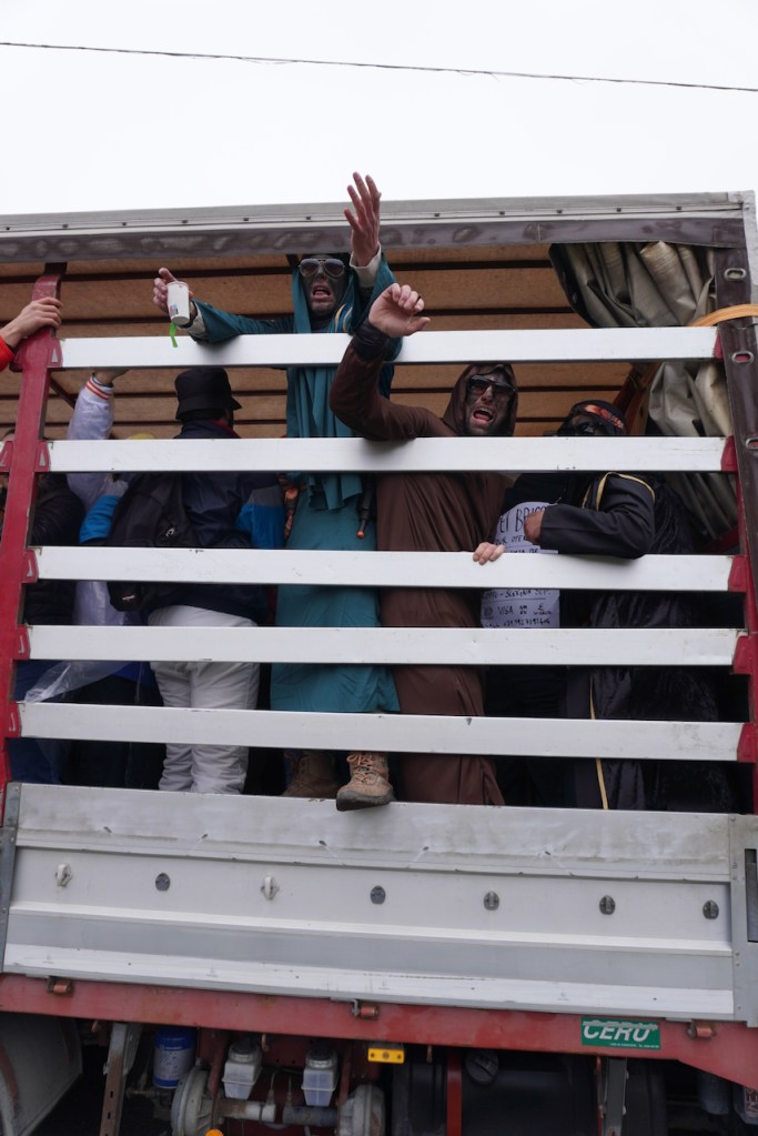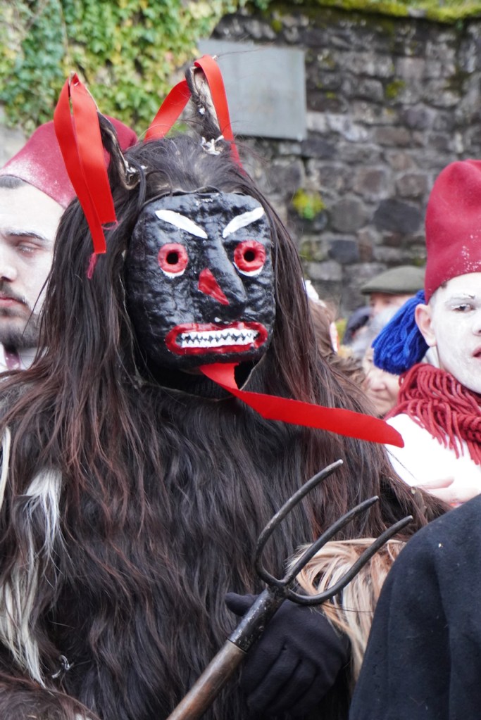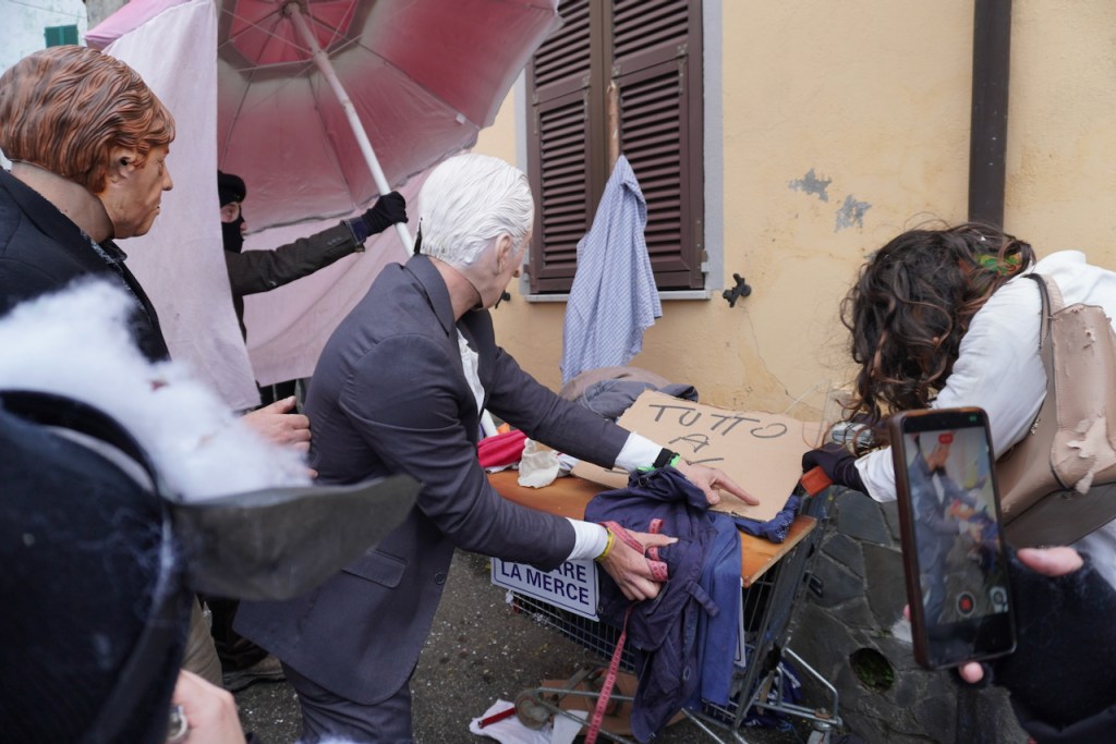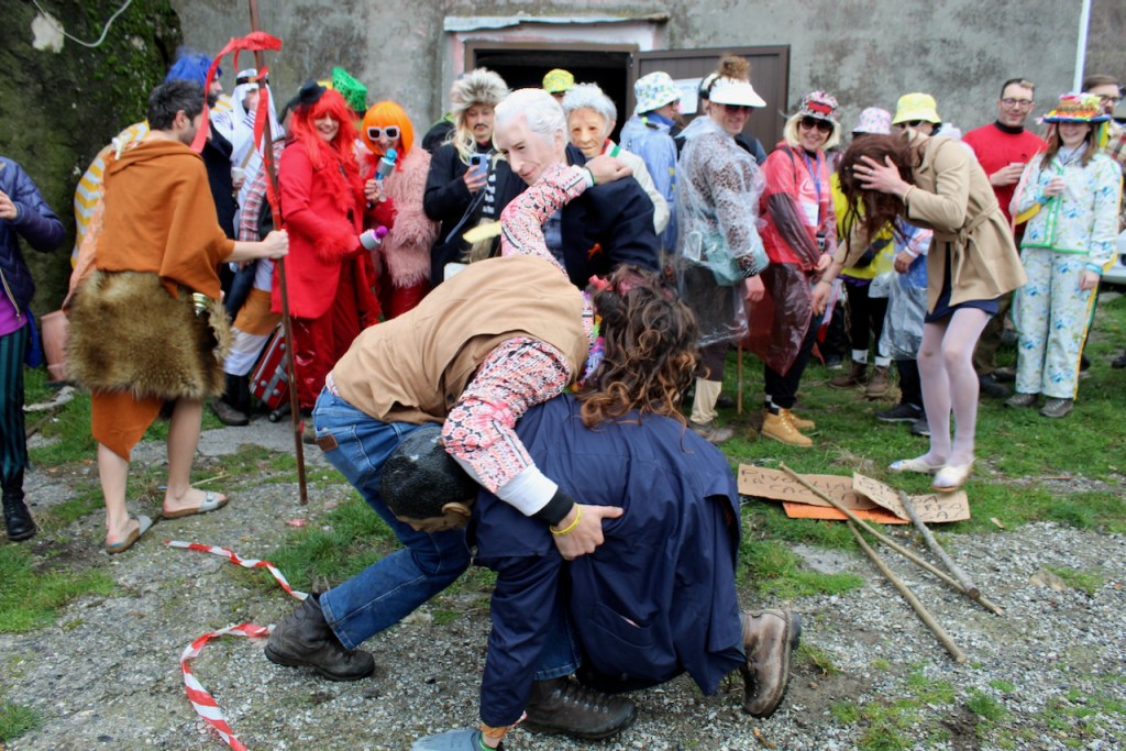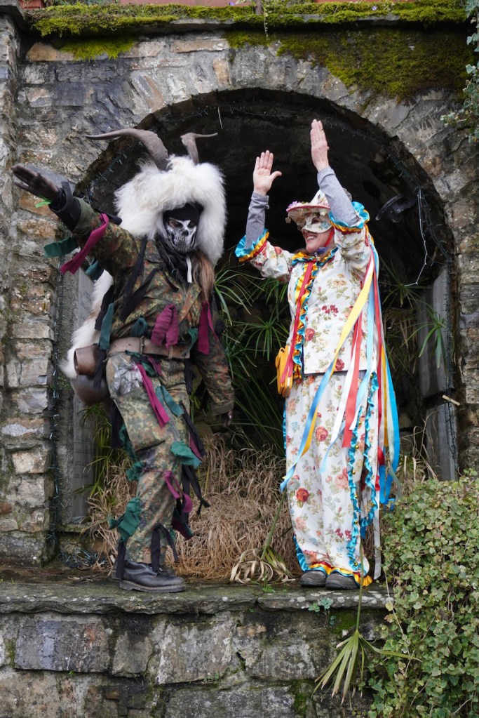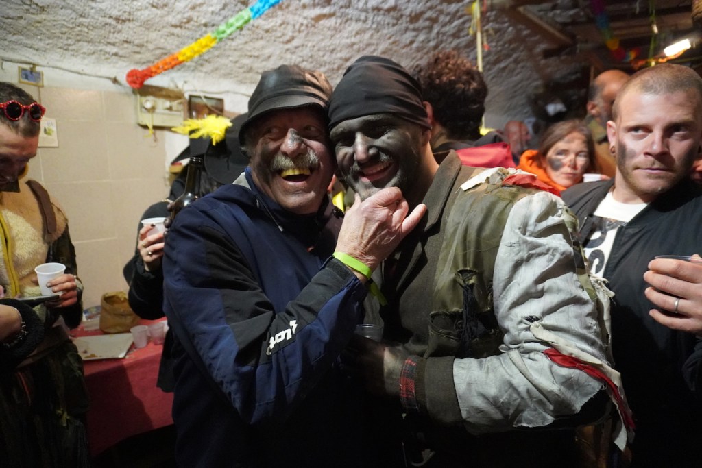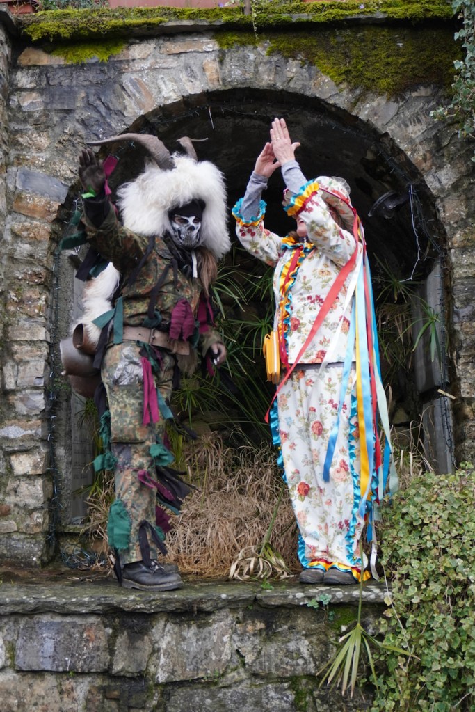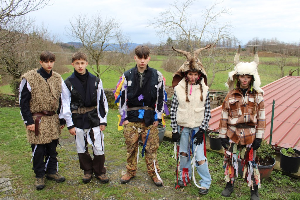 I Brutti, invece, si vestono con pelli di capra o pecora e sulla testa hanno lunghe e grosse corna e il loro viso è tinto di nero. In vita indossano campanacci da mucca, che fanno risuonare danno ritmo allo stesso rito arcaico.