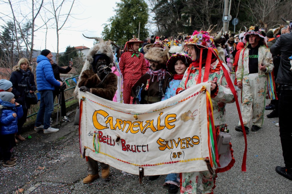 Il Carnevale dei Belli e dei Brutti lo troviamo a Suvero di Rocchetta Vara, centro della Val di Vara in Liguria. I Belli indossano abiti colorati, ricchi di trine, fiocchi e campanelli e in testa indossano cappelli ornati da lunghi nastri colorati e campanellini.